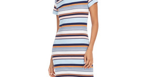 French Connection Women's Striped Crewneck T-Shirt Dress Blue Size 10