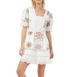 French Connection Women's Cotton Biton Embroidered Mini Dress White Size 6