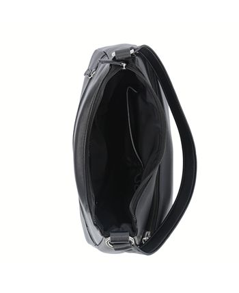 Leather; trim; synthetic|Shoulder strap with 12 drop|Top zip closure|Back zip pocket; front zip pocket; Giani Bernini key fob; shiny silver-tone hardware|Interior features zip pocket| cell phone pocket|11 W x 8-1/2 H x 4 D; weight; 1.4lb; (width is measured across bottom of handbag)