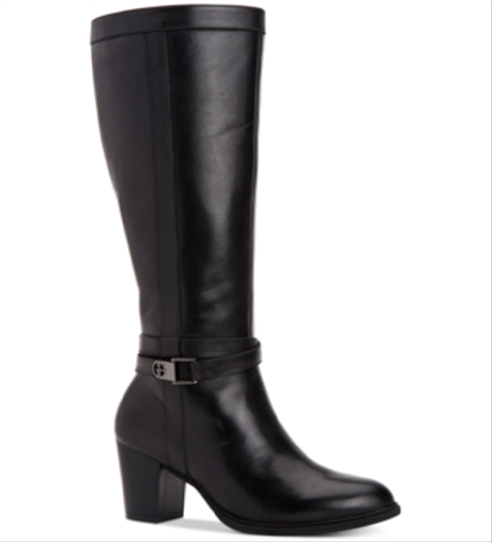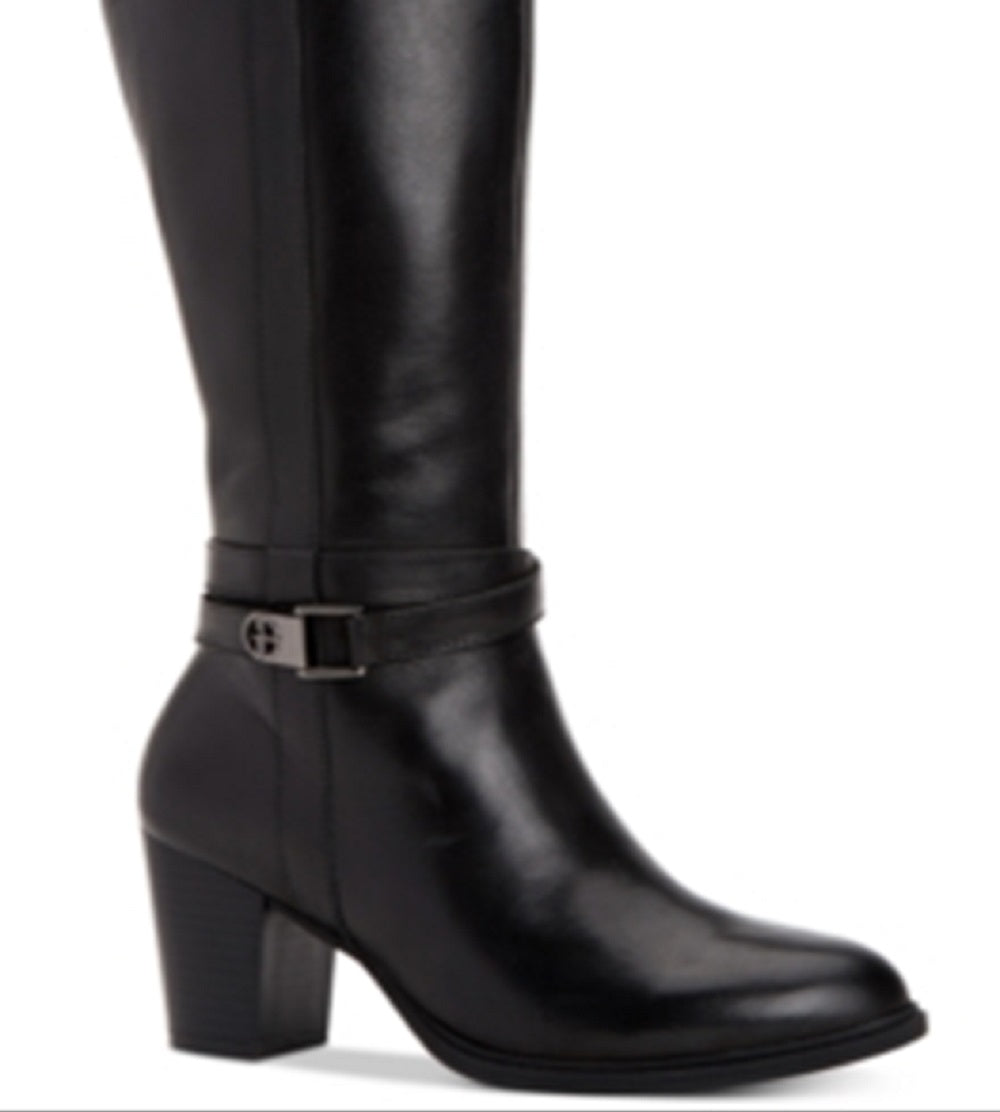 Add the sleek silhouette of Giani Bernini's Rozario dress boots to skinny jeans for a stylish boost with comfortable height.| 2-3/4 stacked block heel| Shaft height; 15; Circumference; 14-3/4| Round-toe dress boots with full zipper closure| Buckled strap detail at ankle| Wide-Calf Options available for this style on page 6322263| Cushioned insole