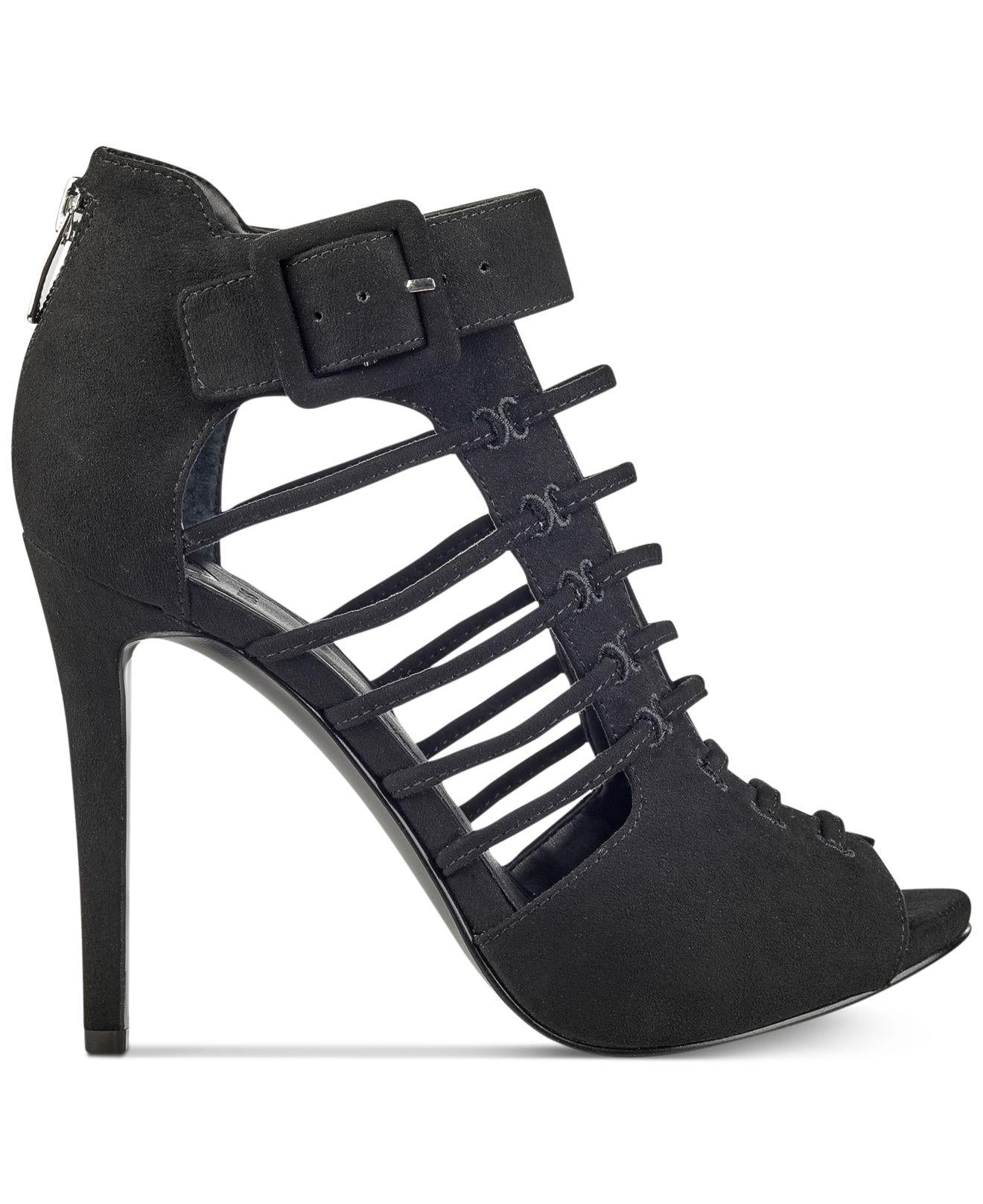 GUESS Womens Adhirra Peep Toe Special Occasion Ankle Strap, Black, Size 9