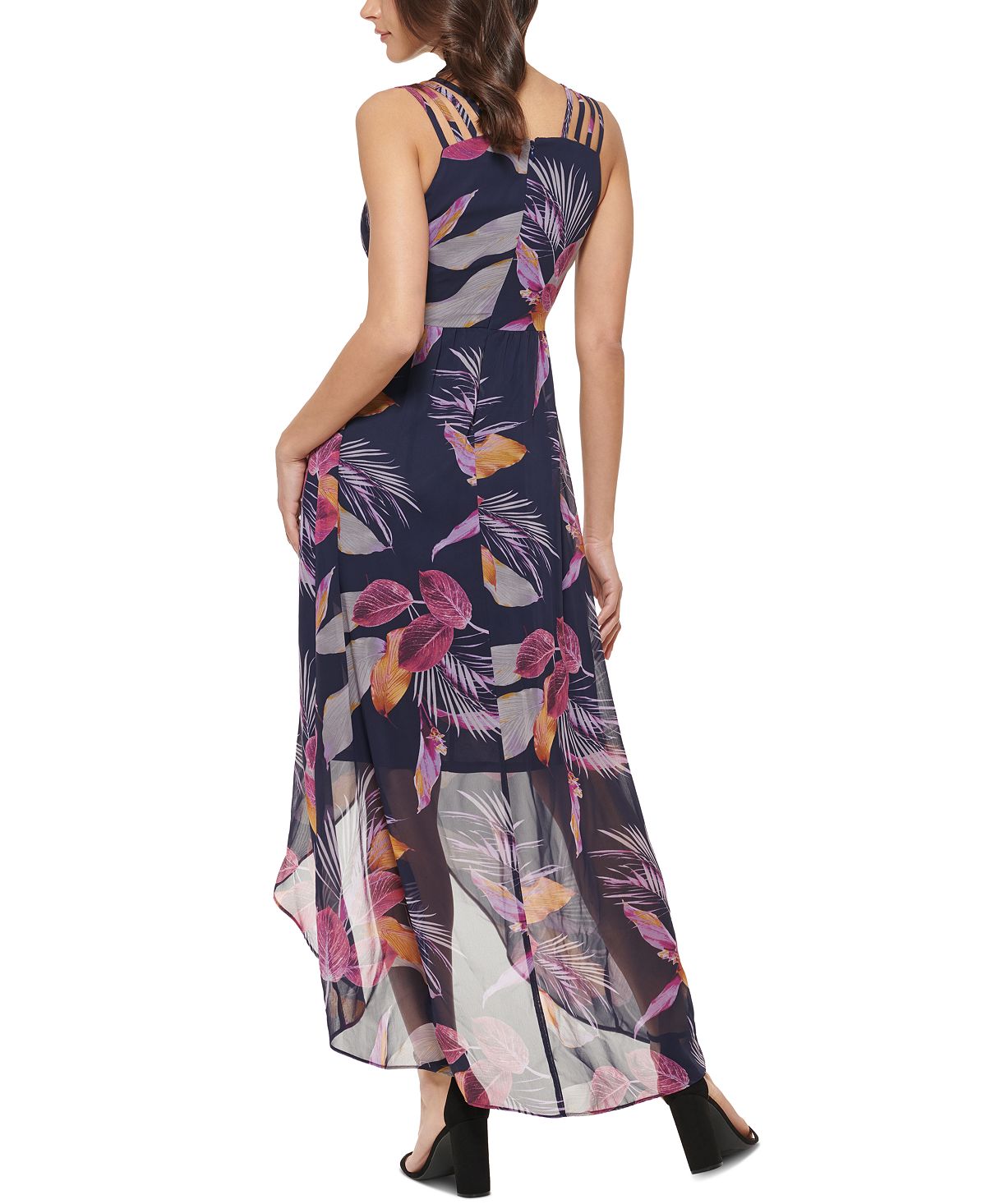 Give your fun days effortless style with this airy chiffon dress by GUESS| featuring a front cutout and a high-low hem.| Approx. 52 long from center back neck to hem. Length is based on size 4 and varies 3/5 between sizes | Ankle-length or longer casual dress| Chiffon; smooth| sheer woven fabric| V-neck; maxi silhouette