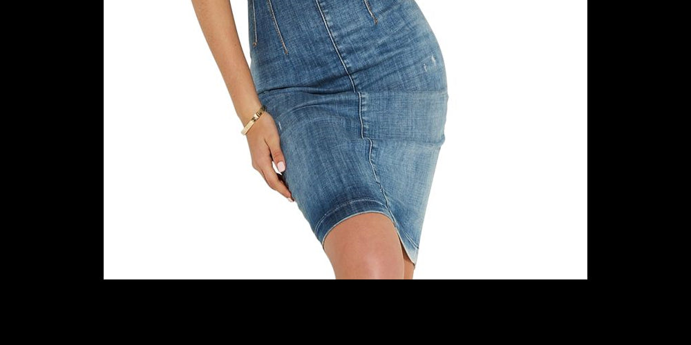 The GUESS dress is styled in denim for standout edge and tailored with a sleek bodycon fit| while a halter neckline adds a flirty finish.| Sweetheart halter neckline; bodycon silhouette| Zipper closure at back| Seam detailing at front| Unlined