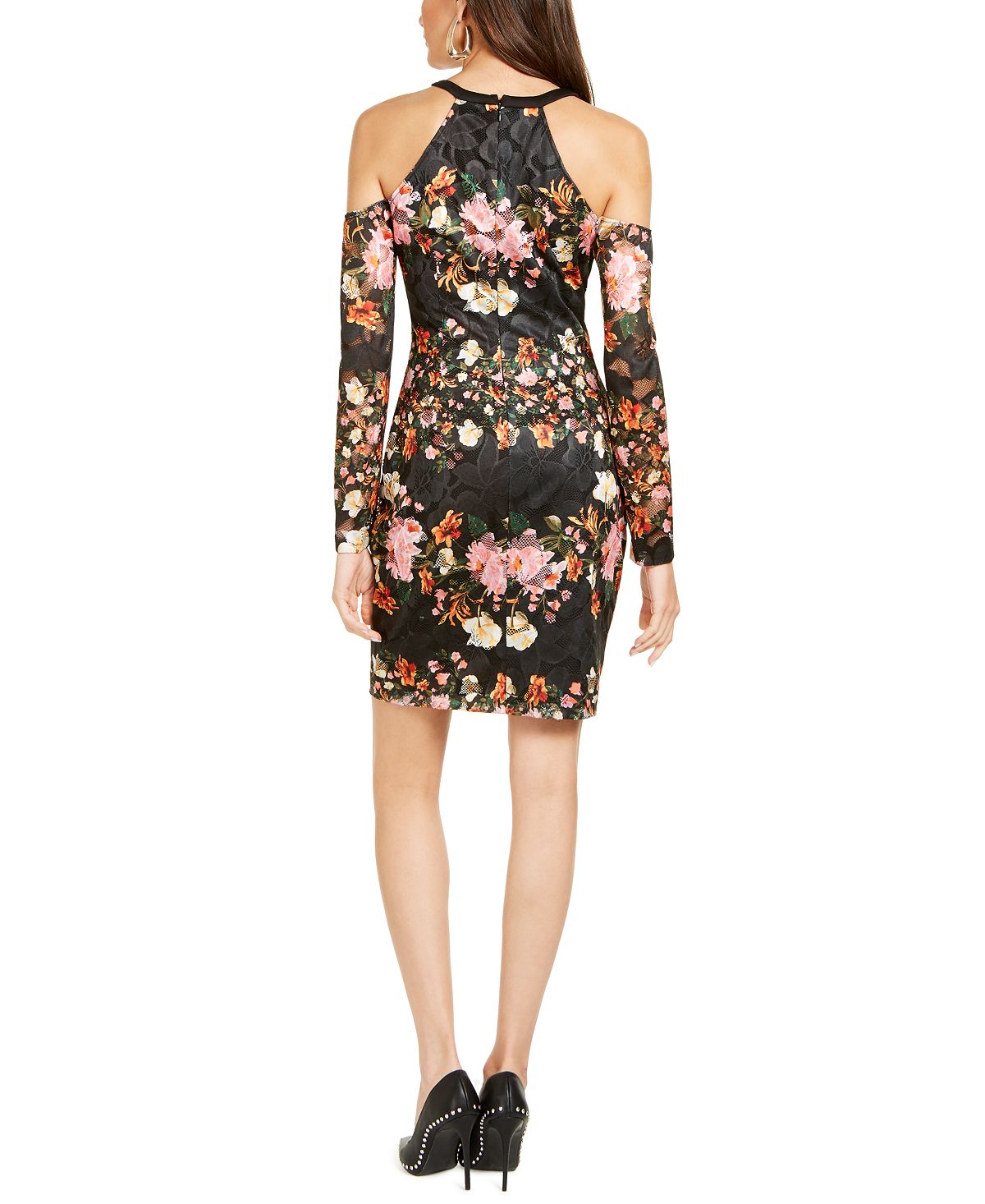 Guess Women's Cold Shoulder Floral Long Sleeve Halter Short Body Con Dress Black Size 0