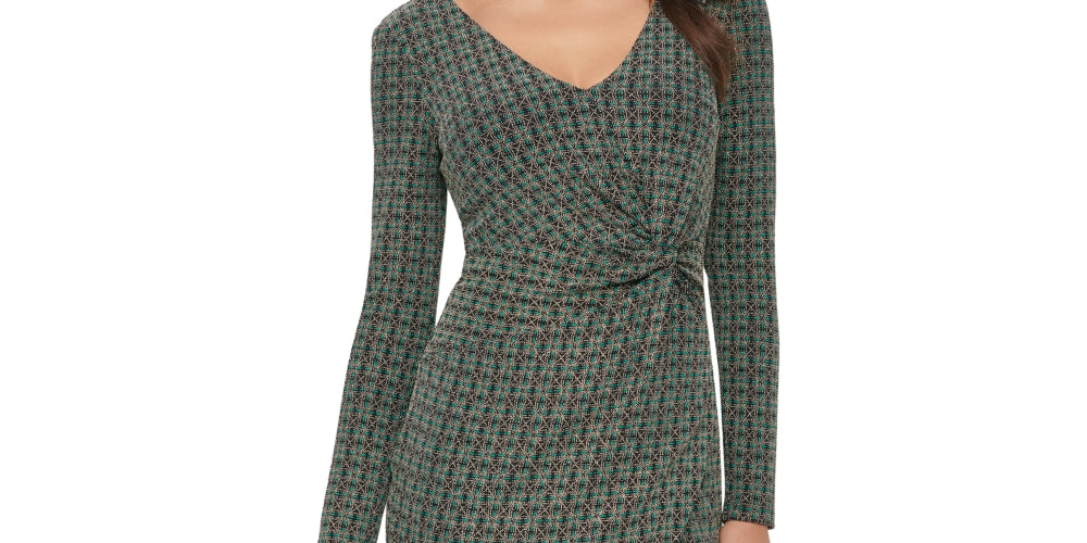 GUESS Women's Metallic Dot V Neck Twist Front Dress Green Size 8
