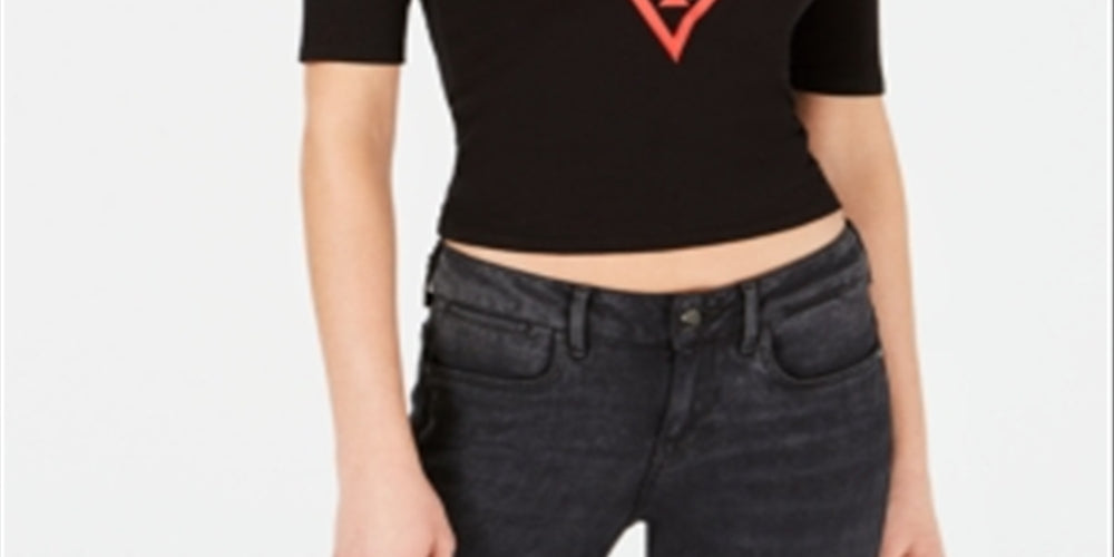 Guess Women's Mock Neck Elbow Sleeve Top Black Size M