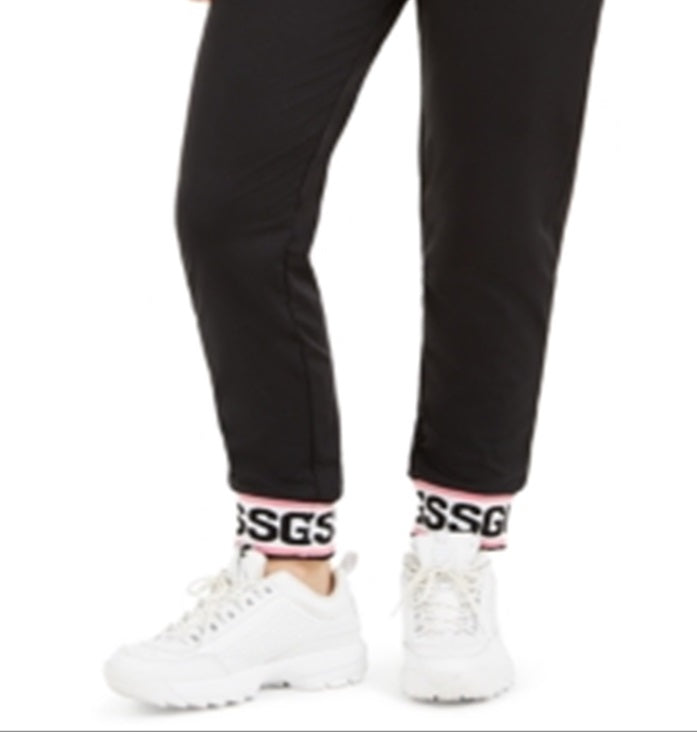Guess Women's Nina Logo Hem Jogger Pants Black Size Large