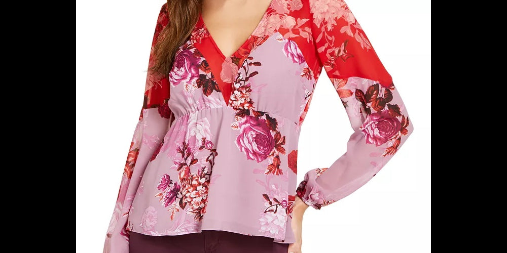Easy fit|V-neckline; empire waist|Allover floral print with colorblocking|Long sleeves with banded cuffs|Polyester|Machine washable