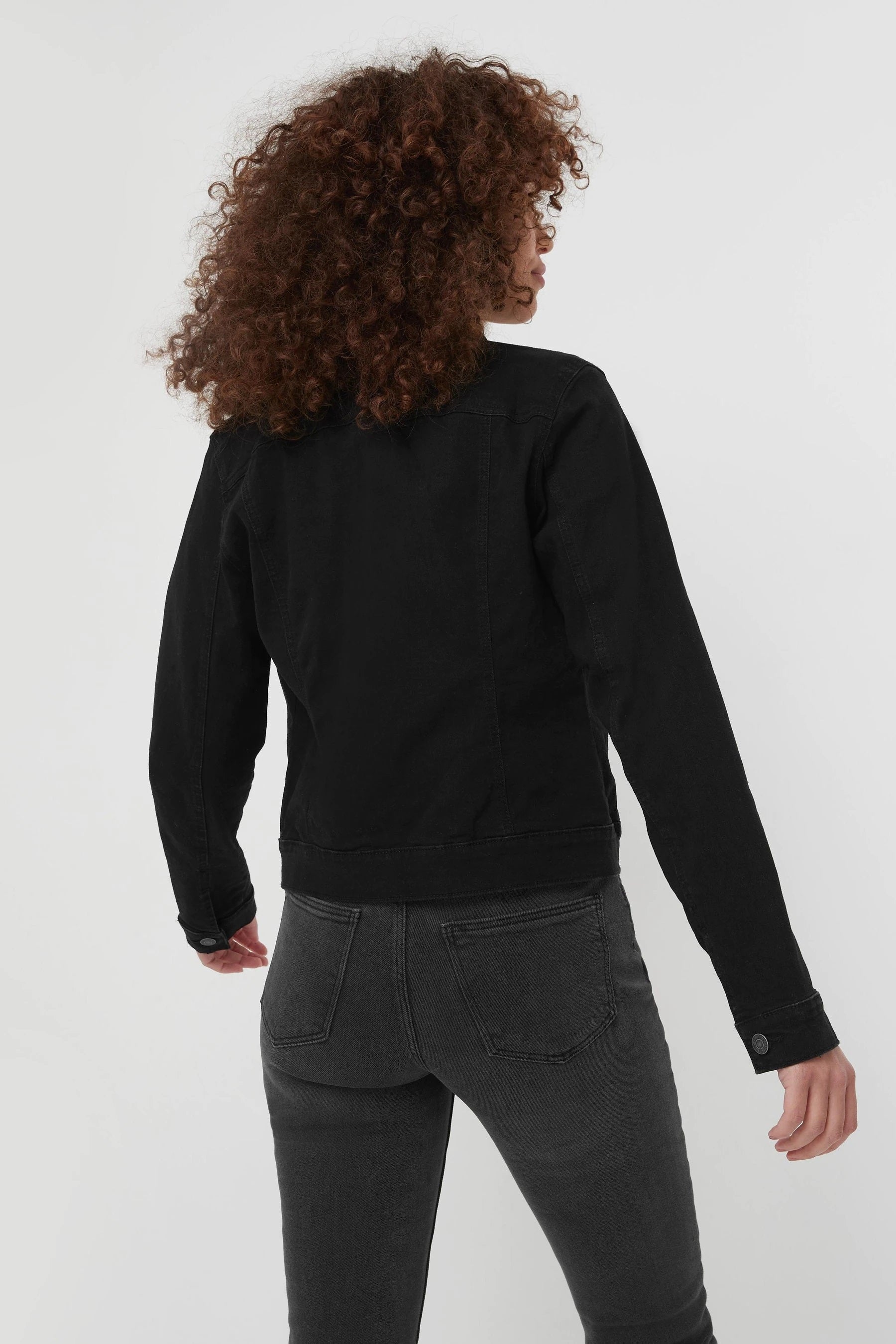 GUESS modernizes a classic trucker jacket with a close-to-the-body stretch fit| a trendy last layer that looks great no matter what.| Point collar; button-front closures| Button-flap pockets at chest; slit pockets at sides| Cotton/spandex| Machine washable