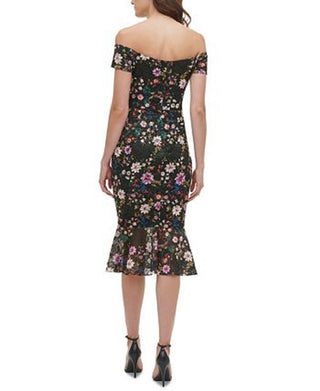 GUESS Women's Off The Shoulder Lace Midi Dress Black Size 0