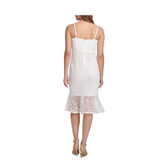 GUESS Women's Flounce Hem Lace Dress White Size 8