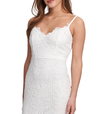 GUESS Women's Flounce Hem Lace Dress White Size 12