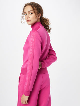 GUESS Women's Allie Logo Striped Zippered Sweatshirt Purple Size Small