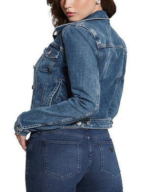 GUESS Women's Sexy Denim Trucker Jacket Blue Size Large
