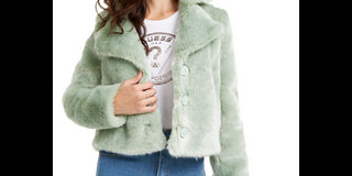 Guess Women's Minted Faux Fur Coat Green Size -M