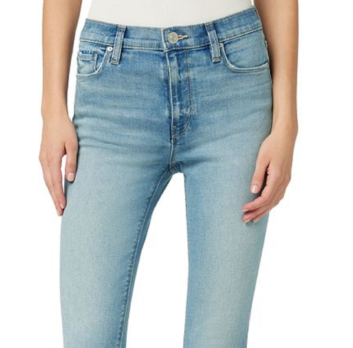 Crafted from premium super stretch denim designed to smooth| sculpt| and hold its shape| Hudson Jeans' high-rise skinny jeans will be your new go-to|