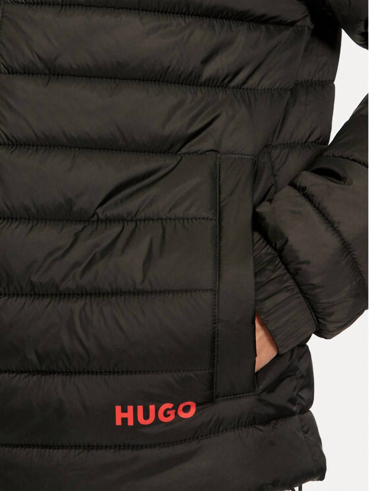 Discover the Brent2441 Puffa Jacket by Hugo Boss, a sophisticated choice for men who appreciate functional style. This black jacket features long sleeves and is skillfully crafted from polyamide with a cozy lining to ensure comfort throughout wear. It boasts a hooded neckline and is equipped with a convenient zipper closure, making it an excellent choice for brisk days. Proudly imported from JO, this solid pattern jacket bears a striking red logo and features practical pockets. Care for it easily with machine wash instructions.