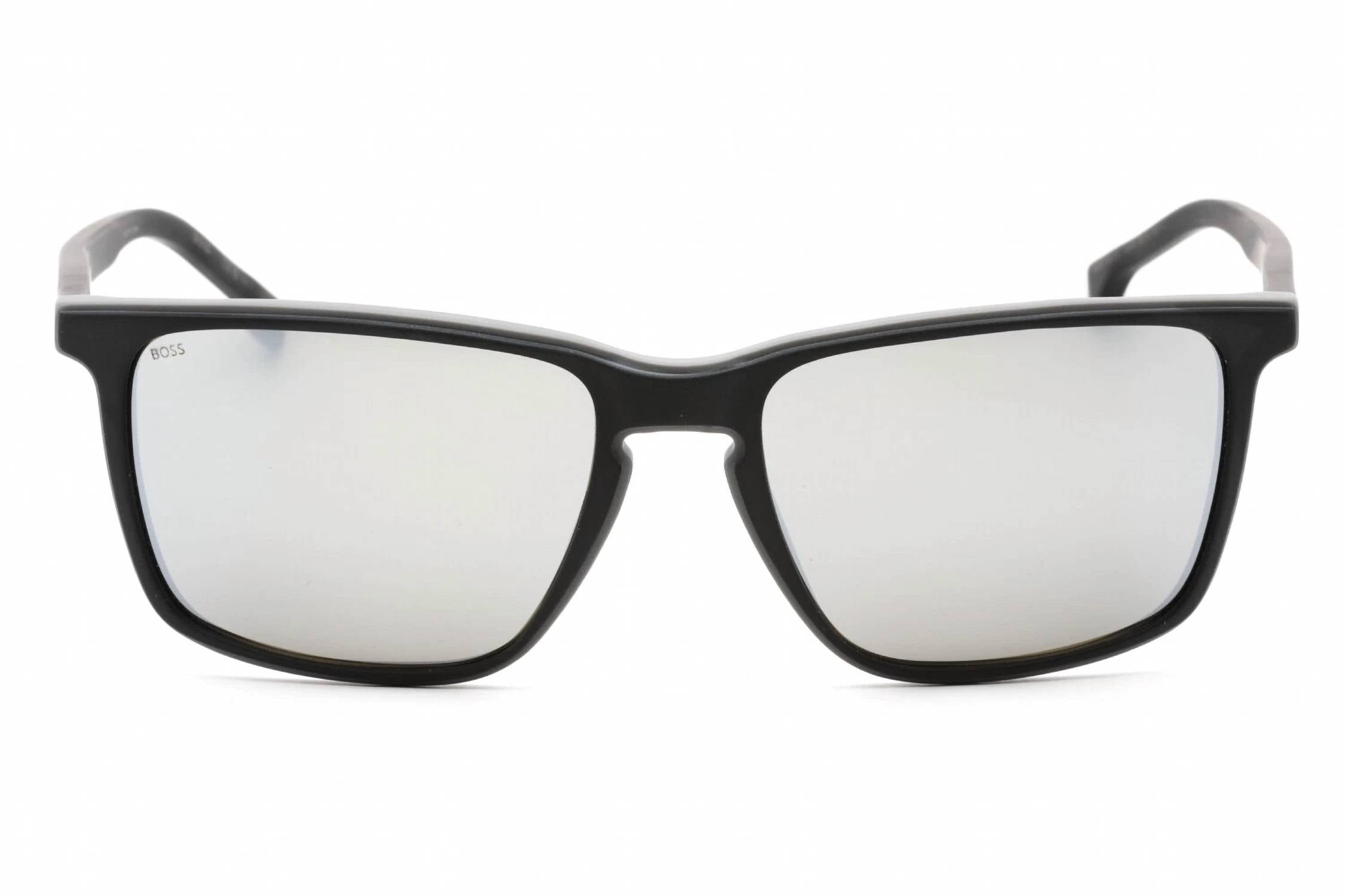 Elevate your eyewear collection with the Hugo Boss Men's 1556/o/s Sunglasses, featuring a sleek square design. The frame boasts a sophisticated Matte Black Grey color, complemented by Silver Mirror lenses. With a lens width of 57 mm, bridge of 18 mm, and temple length of 145 mm, these sunglasses promise a comfortable and stylish fit. Perfect for those who appreciate refined aesthetics and quality craftsmanship.