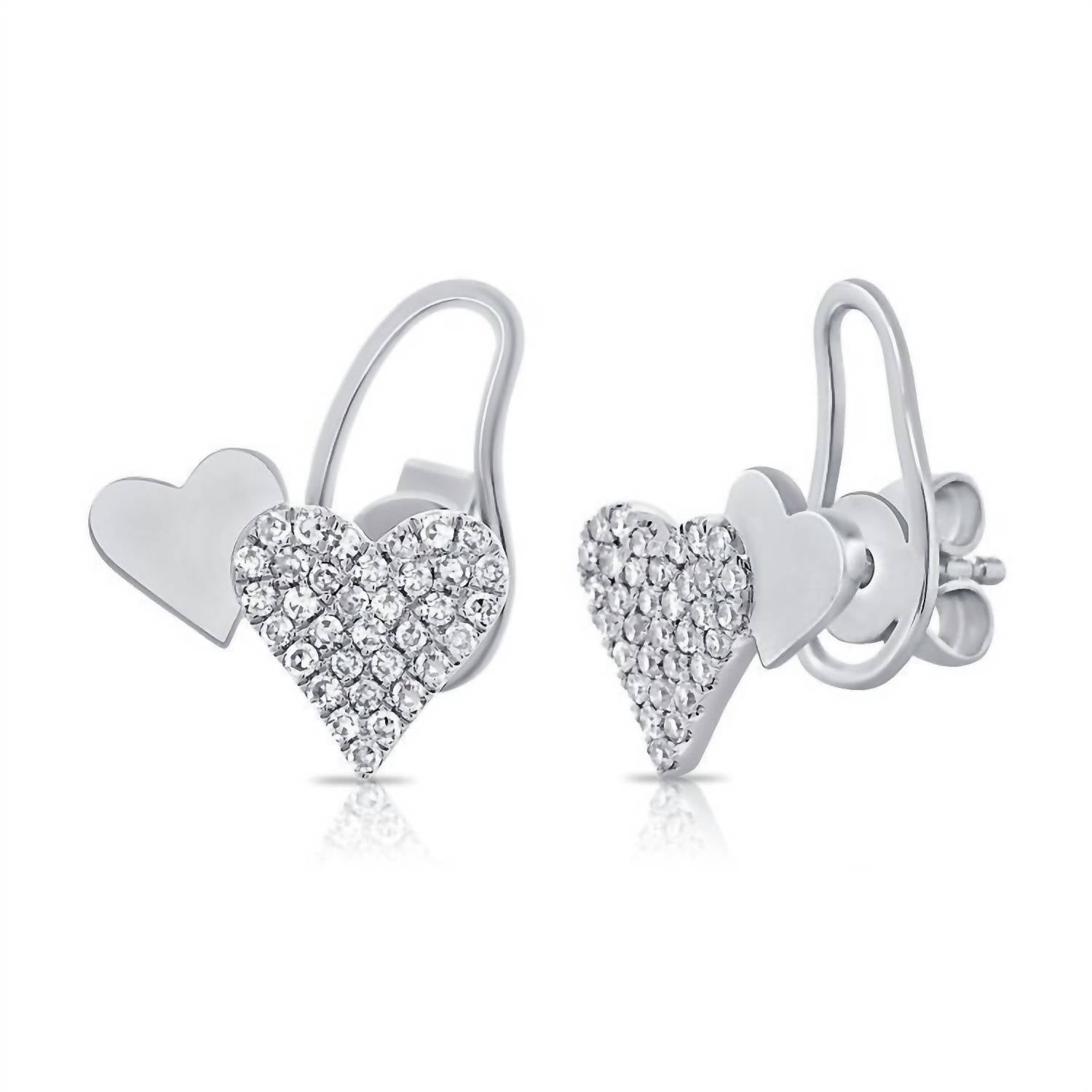 eye-catching earrings for every occasion. Presenting the 0.19ct Diamond Stud Heart Earrings by Diana M Jewels, crafted in 14k white gold. These fine jewelry pieces showcase 68 natural diamonds with a total carat weight of 0.19, offering a near-colorless glow and Si1 clarity. Secured with a post clasp, these earrings are set to captivate with prong-set stones. A timeless addition to your collection, perfect for those born in April or any diamond enthusiast.