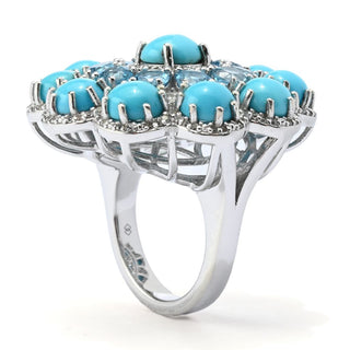 Gem Treasures "Desert Flower" Sleeping Beauty Turquoise & Swiss Blue Topaz Ring