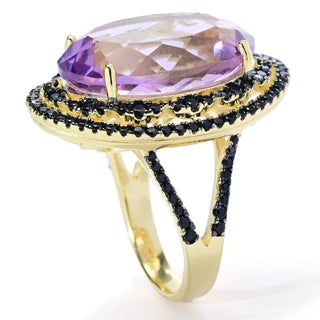 18K Gold Plated Choice of 20x15mm Oval Gemstone & Black Spinel Statement Ring