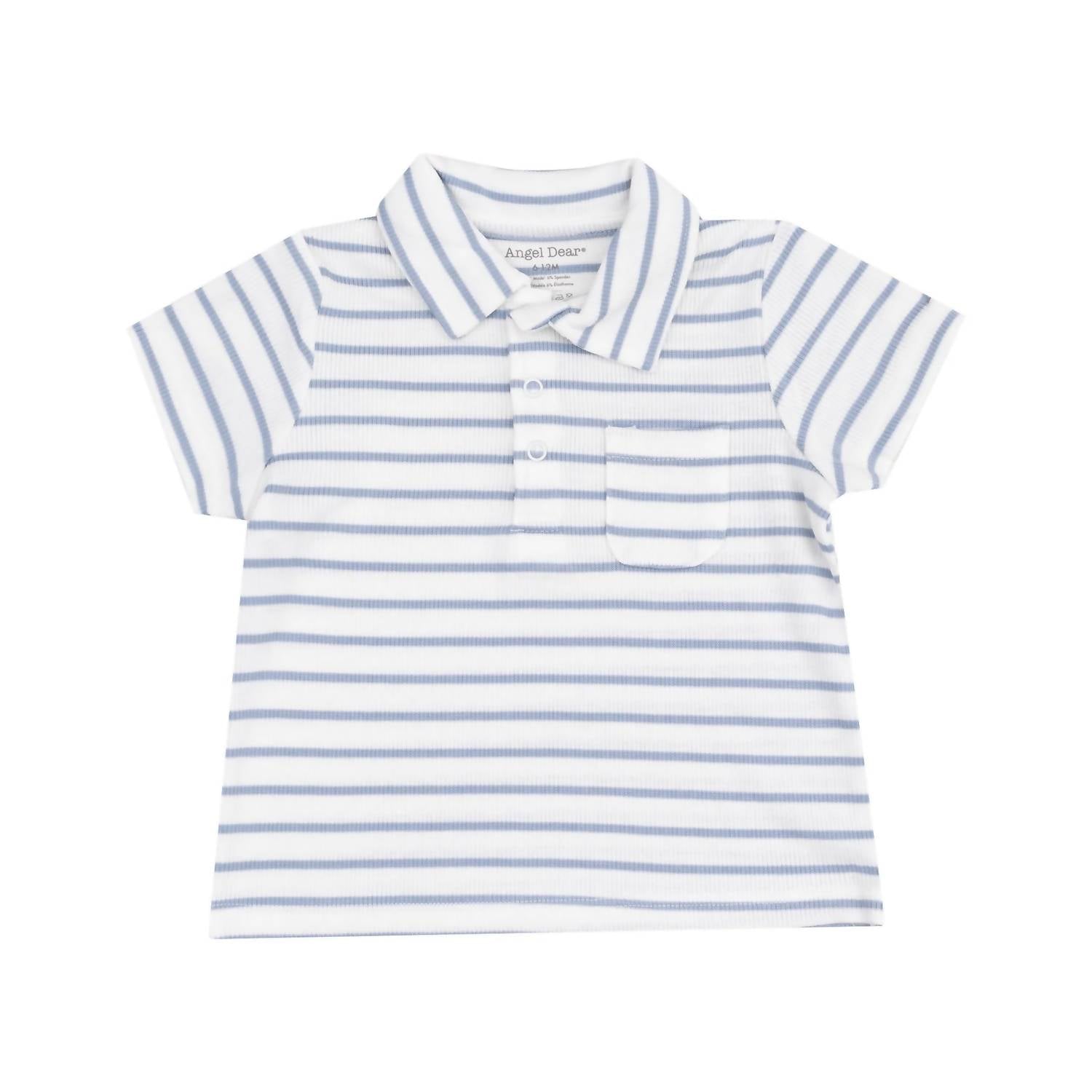 Introducing the Boys' French Stripe Polo Shirt and Muslin Short Set by ANGEL DEAR, a perfect blend of classic style and comfort in Dusty Blue. This set features a top made of soft ribbed modal fabric (94% Modal, 6% Spandex) and shorts crafted from 100% organic cotton muslin, ensuring your little one stays cool and stylish. While precise sleeve and garment lengths aren't specified, the versatile design is crafted for all-day adventures. Care: Wash cold, dry on low heat or hang dry.
