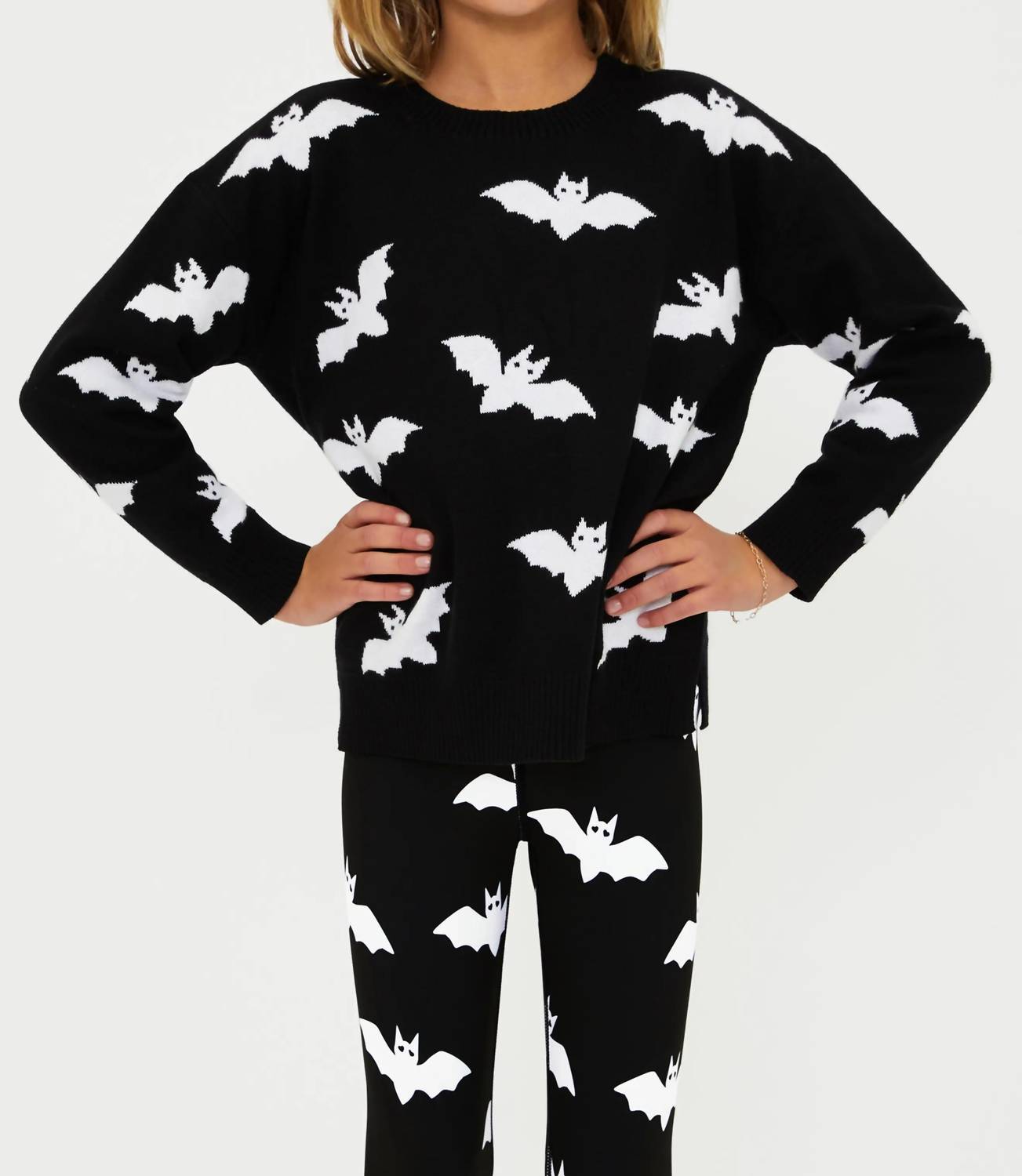 Welcome the fall season with the Little Callie Sweater by Beach Riot, a playful addition to your tween's wardrobe. This sweater features charming white bats, adding a dose of Halloween spirit to her outfit. Made from 100% cotton, it promises comfort and warmth on chilly days. Care instructions include machine wash and laying flat to dry, ensuring easy maintenance as you prepare for festive fall fun.