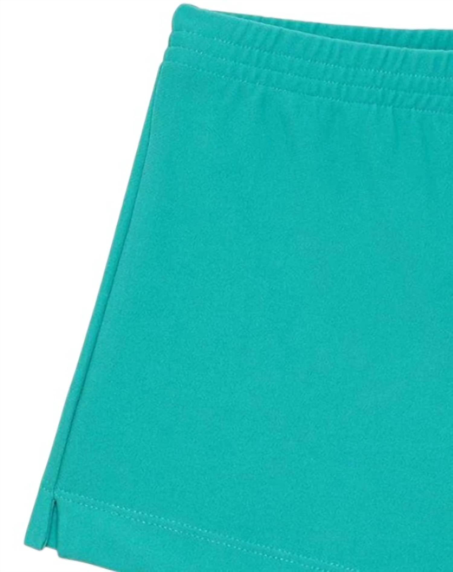 Introducing the Kid's Mini Swim Trunk by Montce in a vibrant teal, designed for boys with a minimalist aesthetic perfect for summer beach days. Crafted from 90% Supplex FD and 10% Extra Life Nylon, this board short offers cheeky coverage with full lining and a side vent detail, accentuated by a cute back pocket. The solid pattern swim bottom ensures UV protection with UPF 50+ and is OEKO-TEX Certified for peace of mind. Care: Hand wash.