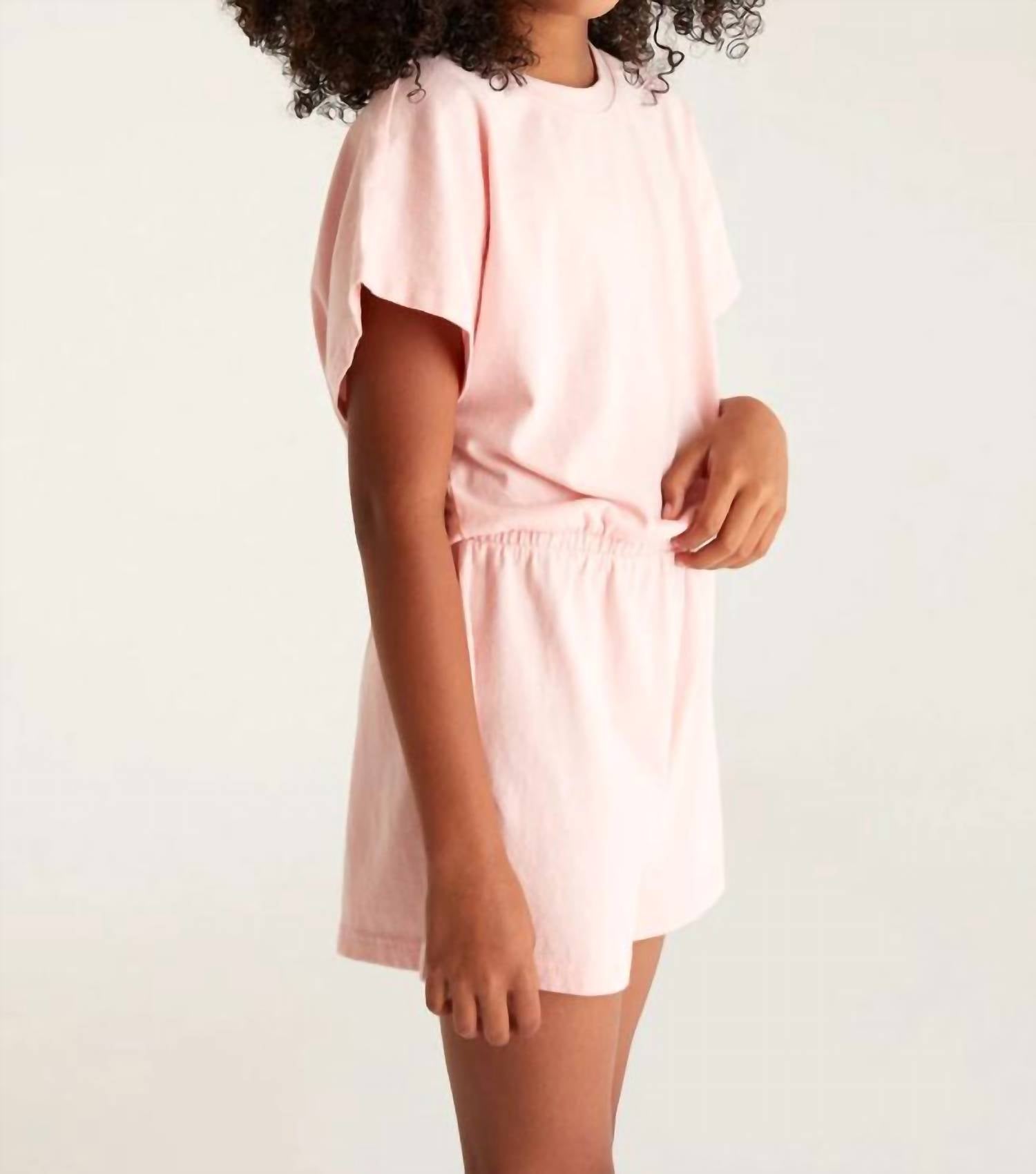 FABRIC: 100% Cotton Jersey. FIT: Relaxed Fit. Featuring a relaxed fit with an elastic, fitted waistband, this romper has a wide neckline and wide sleeves for added comfort.