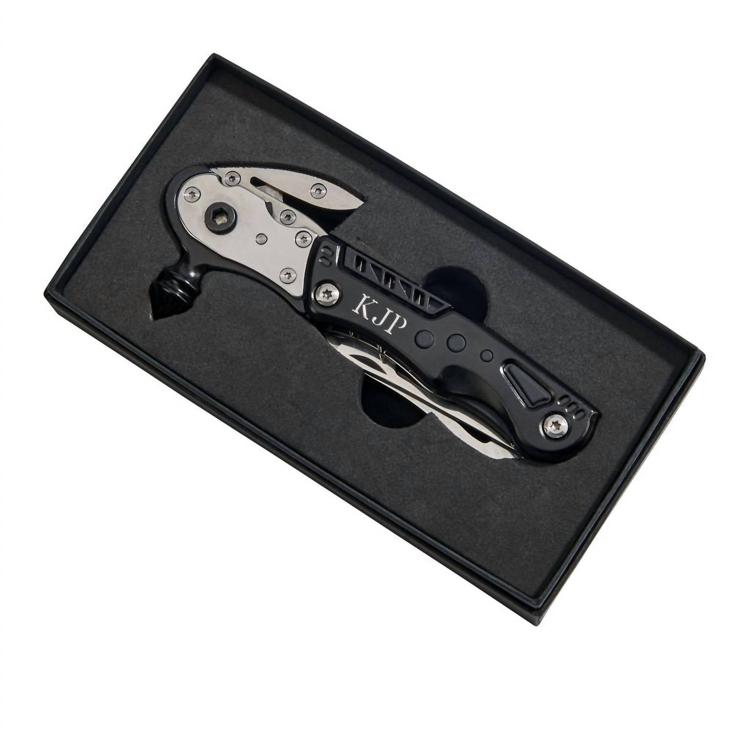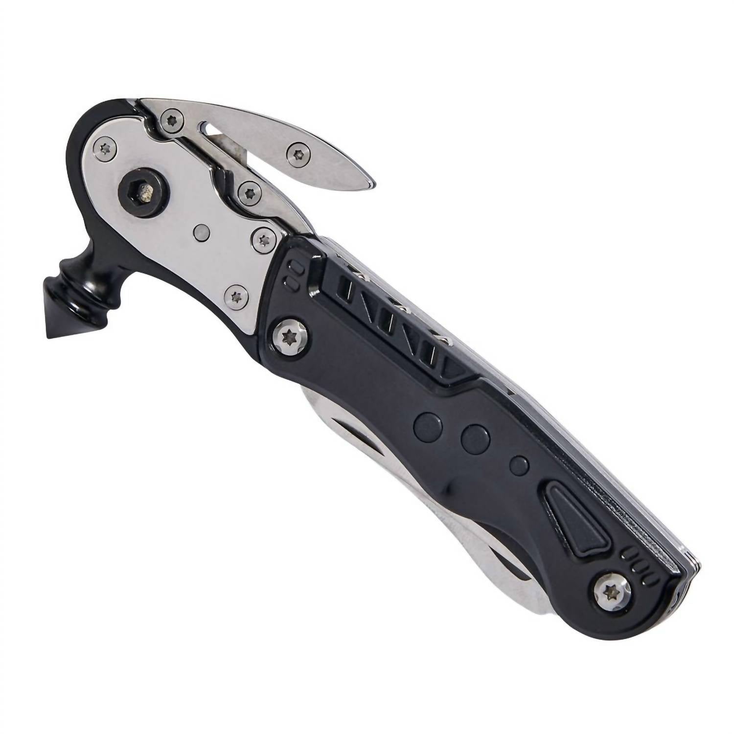 It's only 6.25" when closed but it opens 9.25" when extended. The tool features: a glass breaker; a seat belt cutter; a ratchet driver with 3 screwdriver bits; a knife blade; a saw blade; bottle opener; multiple wrench components; and an LED light.