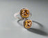 Elegance and sophistication converge in the Radiant Gemstone Duo Ring, a stunning piece of fine jewelry featuring two square-cut faux yellow diamonds as its centerpiece. These vibrant yellow gemstones radiate warmth and allure, beautifully framed by a delicate halo of small faux white diamonds that enhance their brilliance. Crafted with precision and finished in white gold plating, this ring combines classic charm with a modern geometric design.