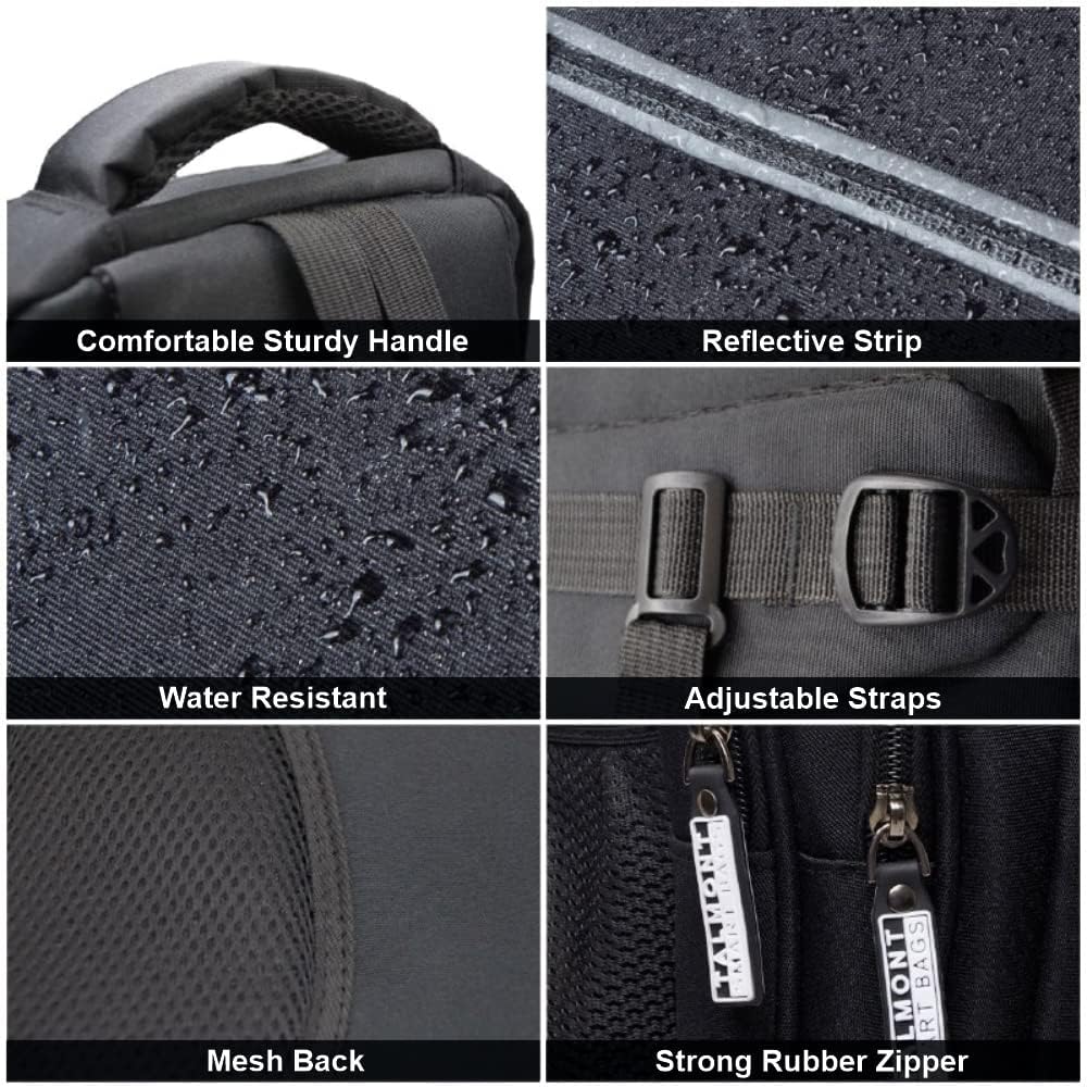 3 spacious compartments for everything from laptops and documents to shoes and tech gear