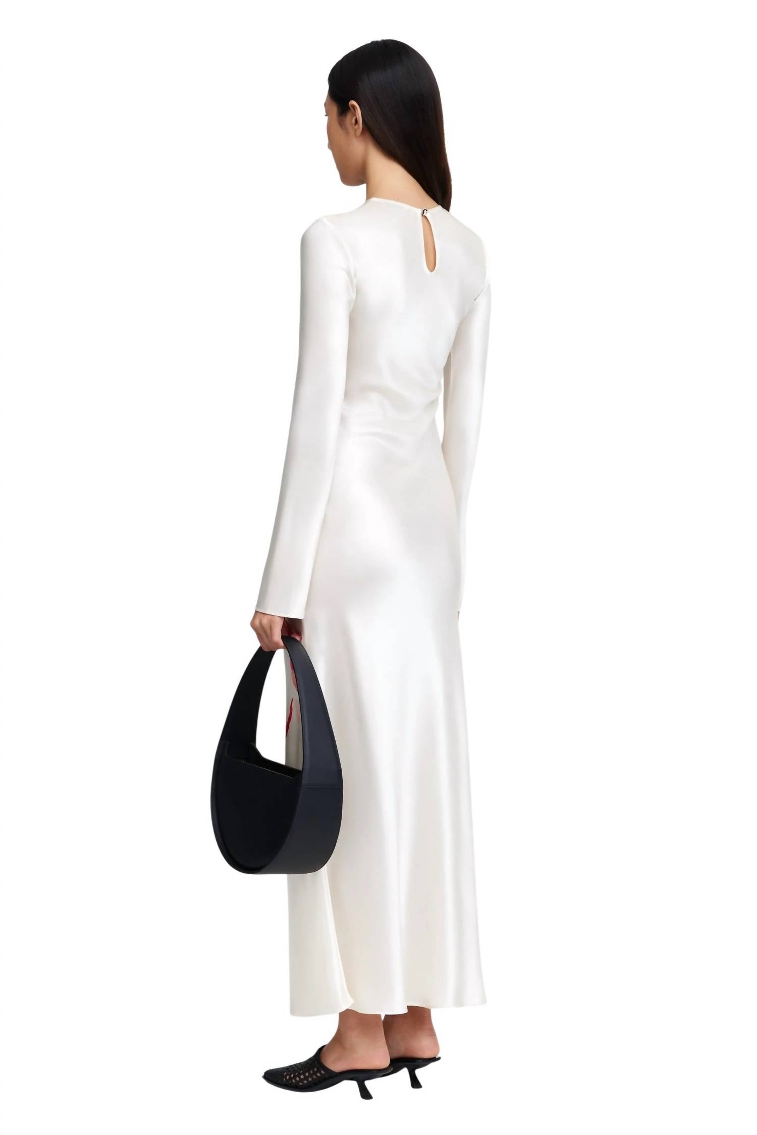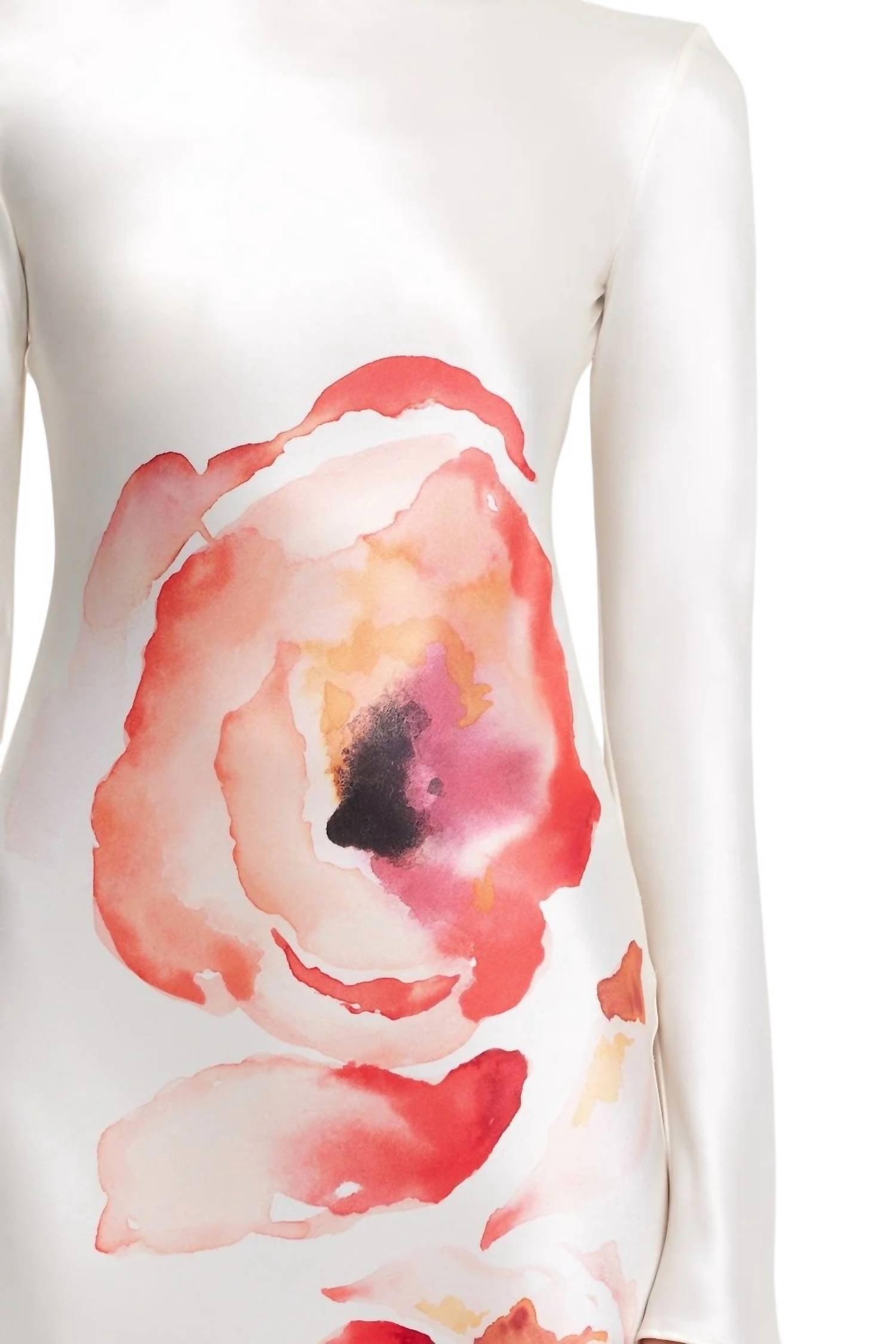 The perfect length dress does exist. Introducing the ACLER Salesbury Midi Dress in Whiteberry Poppy Fleur, an elegant sheath silhouette perfect for dinner parties and New Year's Eve celebrations. This long sleeve dress, crafted from 76% acetate and 24% polyester with a 100% polyester lining, features a stunning hand painted graphic print. The open back is secured with a gold button at the crewneck, complemented by an invisible side seam zip for a flawless finish. Originating from the Spring season's Quiet Luxury trend, this dress should be dry cleaned to maintain its exquisite detail. Model is 177cm / 5'9.5" wearing an AU 8 / US 4.