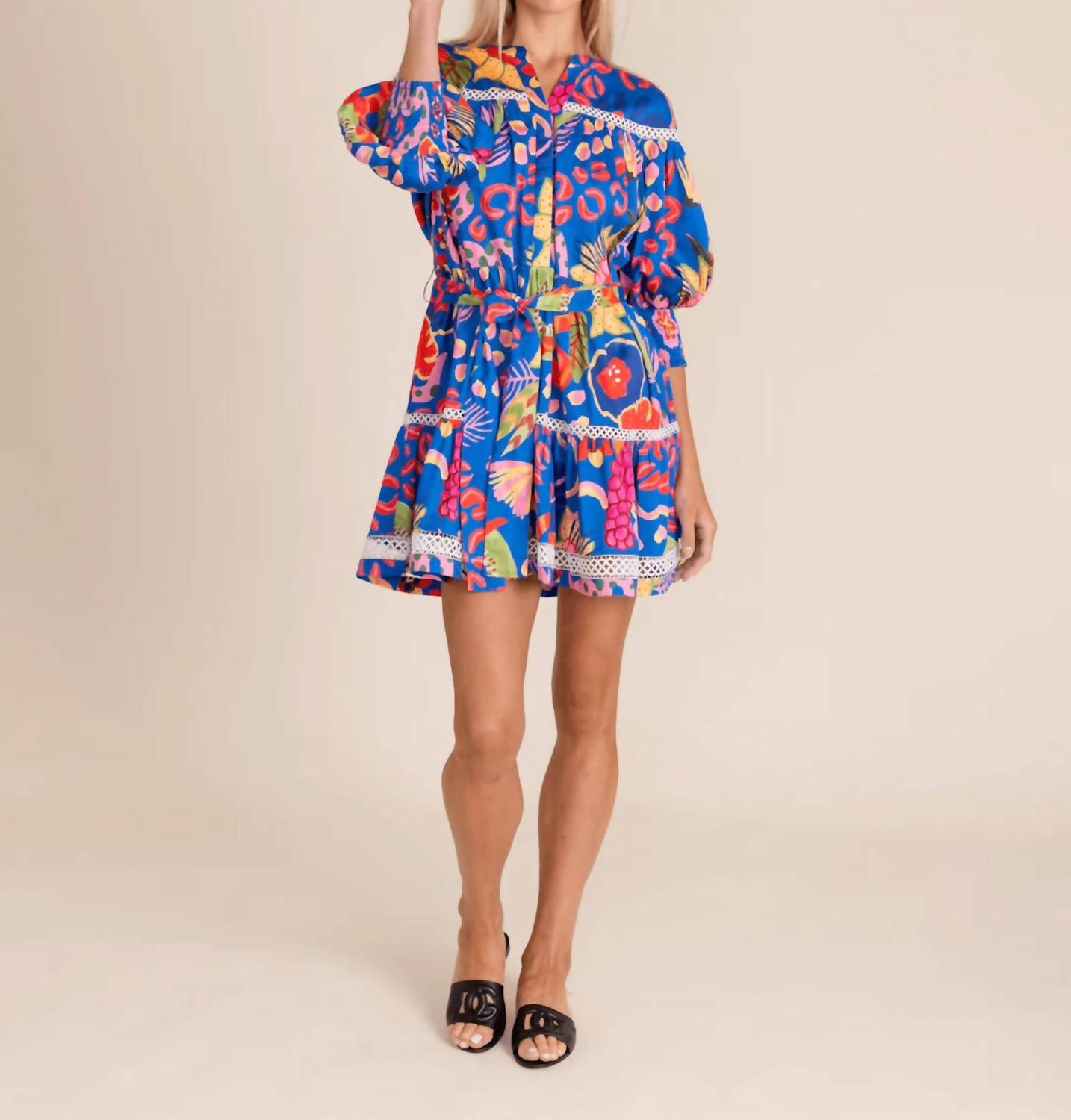 The perfect mini dress for those warmer months. Introducing the Charlotte Mini Dress by Alden Adair, an enchanting addition to your wardrobe in a captivating Blue Orchid hue. This dress features short sleeves and a playful shift silhouette with contrast detailing on the bodice and skirt. Made from cotton sateen, it is composed of 98% cotton and 2% spandex, providing a delicate balance of comfort and stretch. Closure: Hook and eye. Care: Machine wash cold, lay flat to dry.