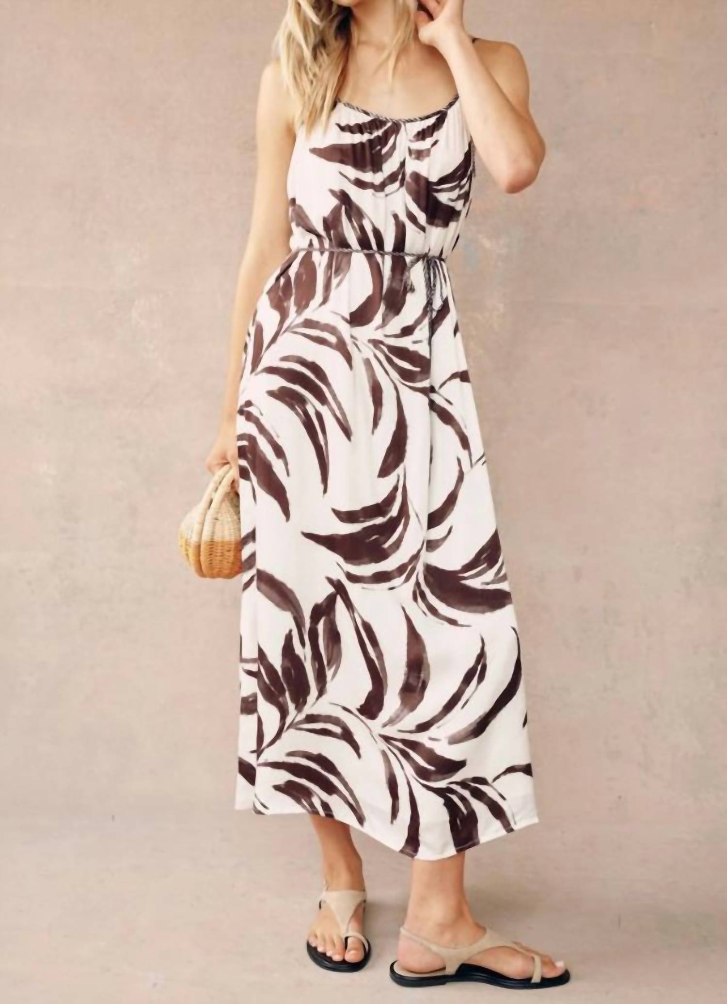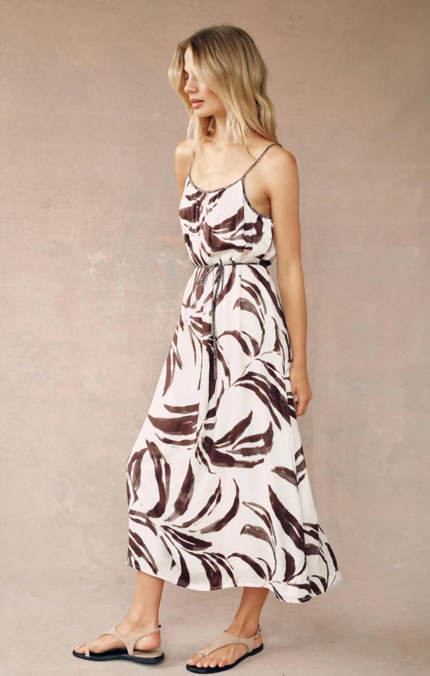 Style this maxi with your favorite statement necklace and sandals for the perfect look. Introducing the Shirred Cami Maxi Dress by Bella Dahl, a perfect choice for beach days with its Moroccan Palm print floral pattern. This dress features adjustable spaghetti straps, a flowy A-line silhouette, and a belted waist for a customized fit. Made from a luxuriously soft blend of 71% rayon and 29% silk with a pull-on closure, it offers all-day comfort. Care instructions include hand wash and lay flat to dry, ensuring longevity and effortless maintenance.