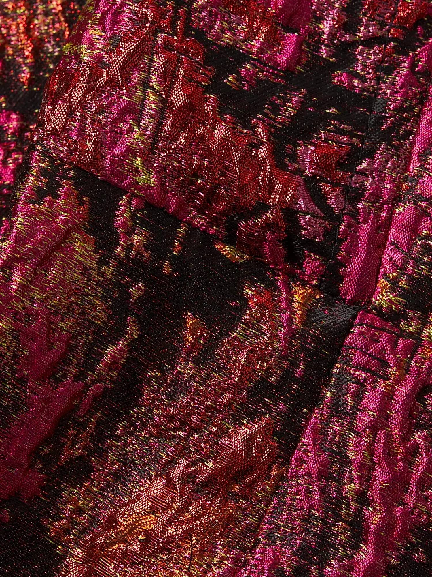 Designed for the bride who values understated elegance. Its classic design and perfect fit make it the ideal choice for your special day. Say yes to the dress! Elevate your formal wardrobe with the Lumina Jacquard Strapless Maxi Gown by Black Halo, crafted in the opulent Opal Storm colorway. This strapless gown is elegantly composed of 91% polyamide and 9% metallic fibers, featuring a sheath silhouette with a chic back slit for graceful movement. Made in the USA from imported fabric, this gown offers a hidden back-zip closure for a seamless fit. Care for this luxurious piece with dry cleaning to maintain its exquisite quality.