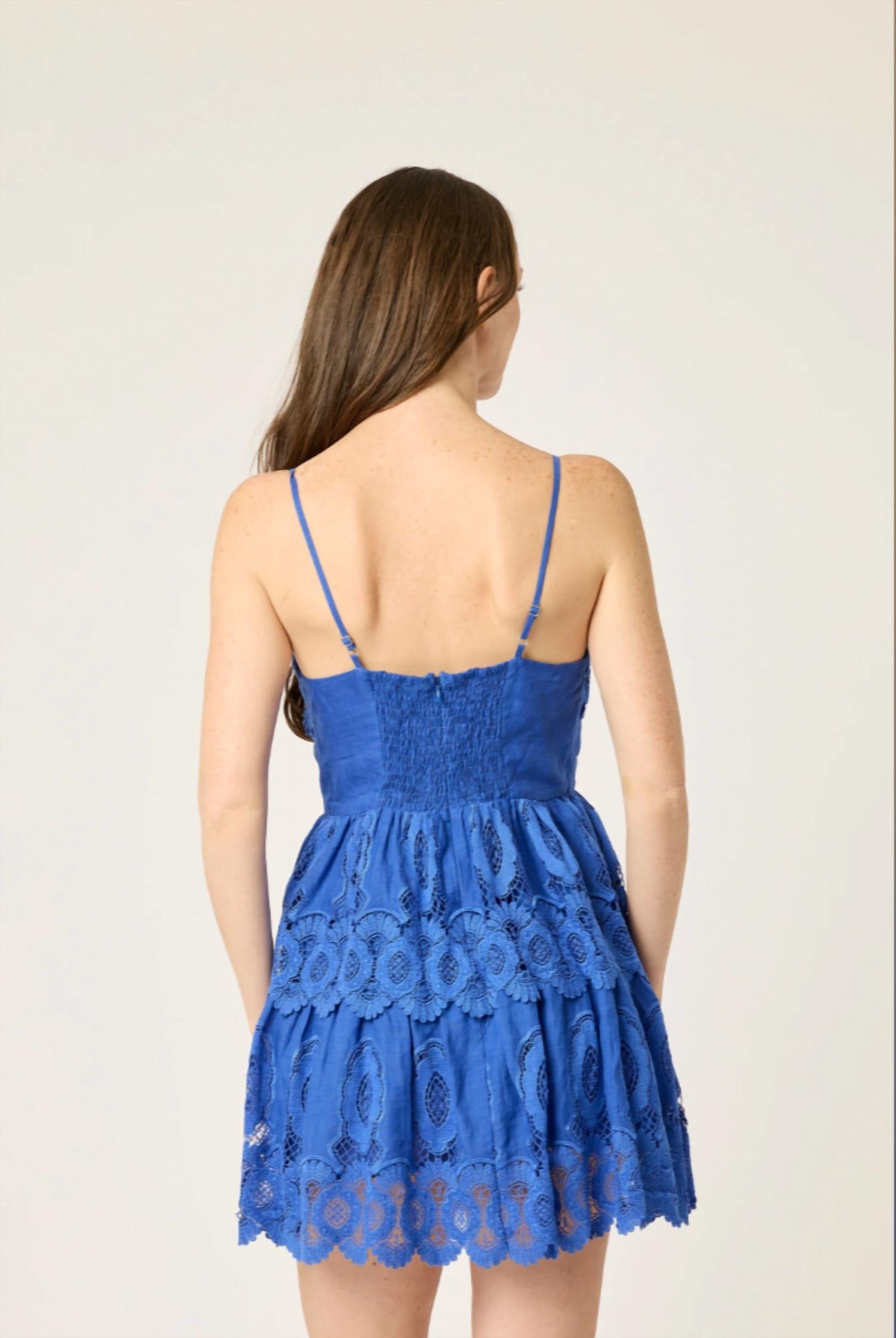 A short and breezy dress for those warmer days. Introducing the Atrani Dress by BTB Los Angeles, a stunning cobalt mini perfect for your spring vacation. This sleeveless dress features a sweetheart neckline and a fit-and-flare silhouette, combining a textured cotton blend of 70% cotton and 30% polyester. With dimensions of 27.5" body length, a 16.5" chest, and a 13.5" waist, it offers a flattering fit enhanced by a smocked panel at the bust and a zip closure. Made in China, this dress should be dry cleaned only to maintain its maximalist appeal.