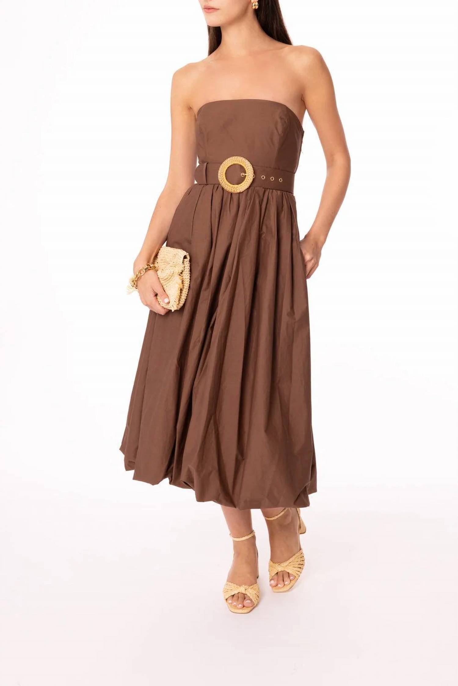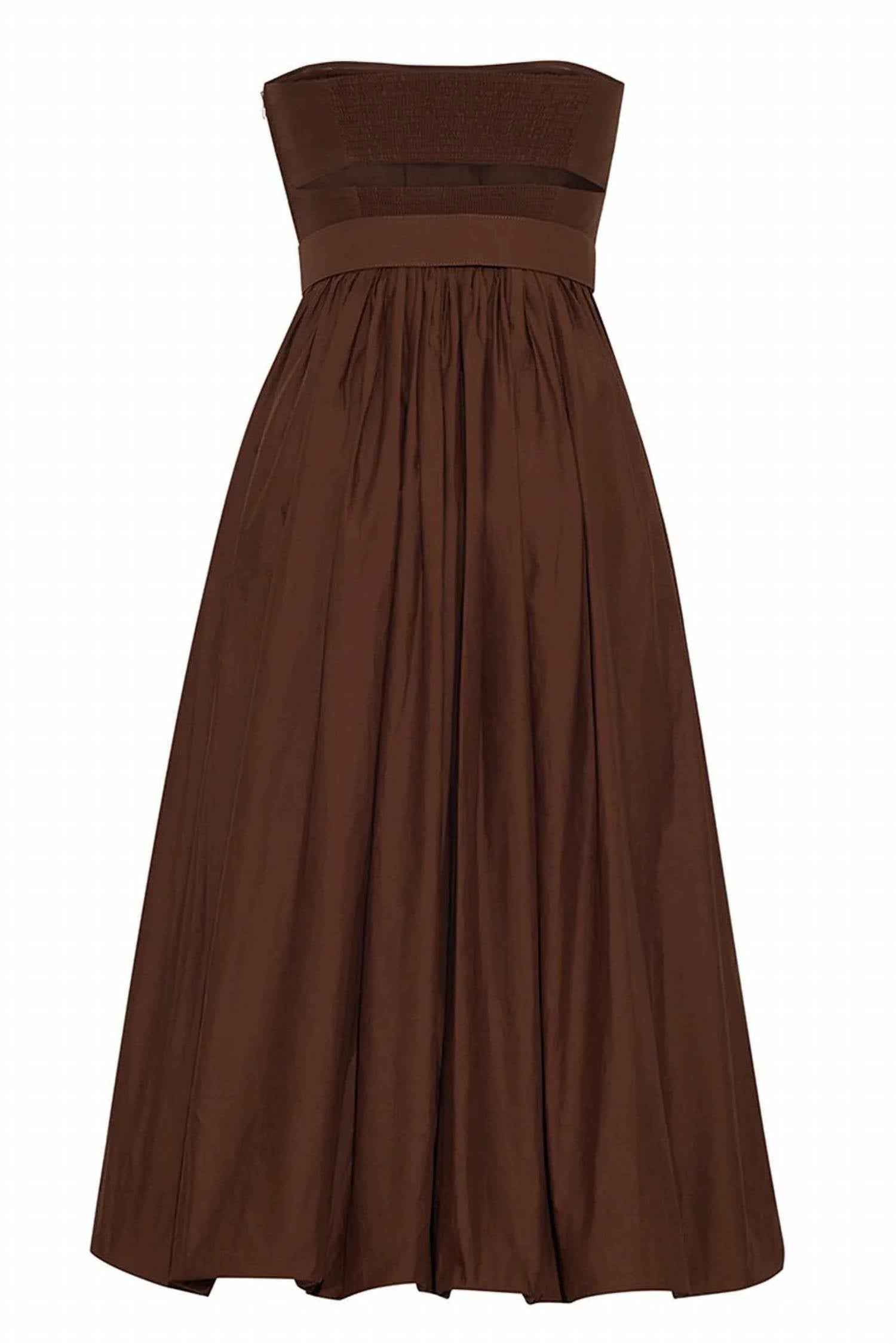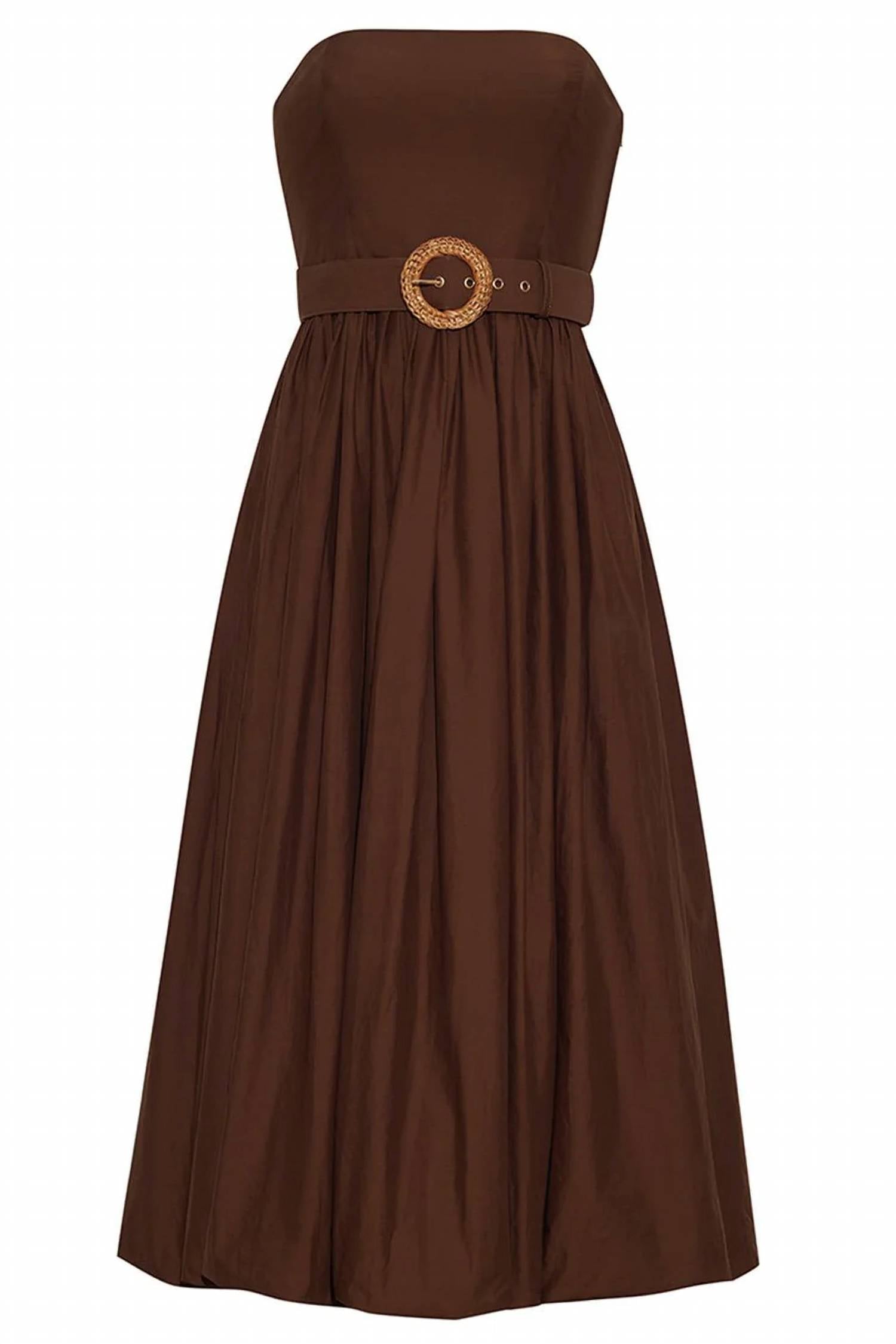 A strapless dress so versatile you can dress it up with heels or wedges, or give off a more casual vibe with flats. Perfect for a chic dinner party this Thanksgiving. Strapless A-line dress. Made from 100% cotton poplin. Offers a solid pattern for a classic and timeless look. Made in China. Features a convenient pull-on closure and a removable belt for added style. Dry clean only.