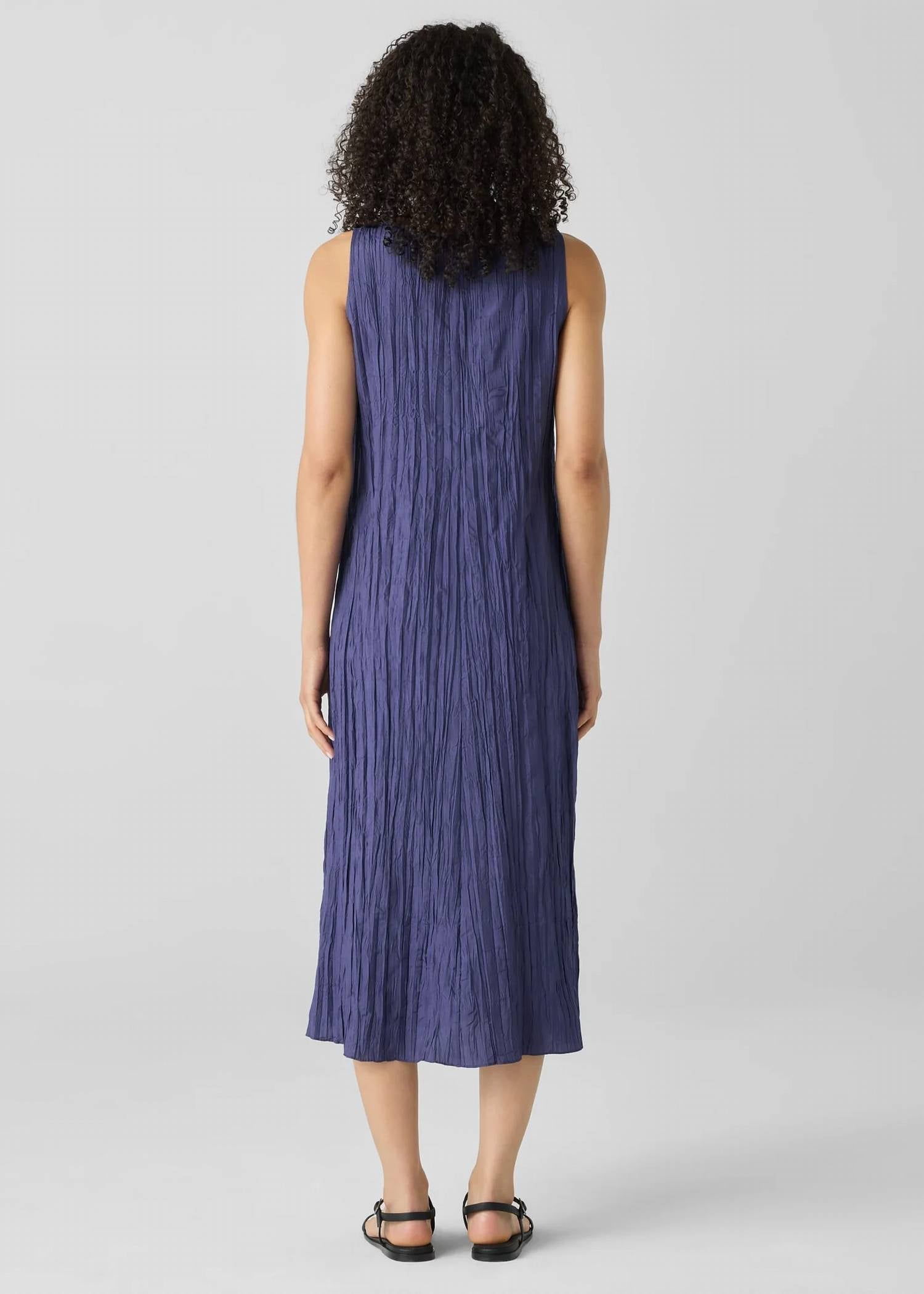 Just add slides or mules and you are good to go. A simple silhouette set apart by dimensional texture. The Eileen Fisher V-neck dress in lustrous silk with a uniquely crinkled surface. Close at the shoulders, wider at the hem. A silhouette that fits the body with ease. Start with the Foundation. This dress is designed to be worn on repeat. It’s part of the Eileen Fisher system of dressing that lets you do more with less. Size 1X measures 52 1/2 inches on the body. V-neck, sleeveless. Center front and back seams. Relaxed elegance. Light and lustrous silk that's twisted for crinkled texture. Place in mesh bag. Machine wash cold gentle cycle. Do not wring. Twist to crinkle and dry twisted. Do not iron. Do not steam.