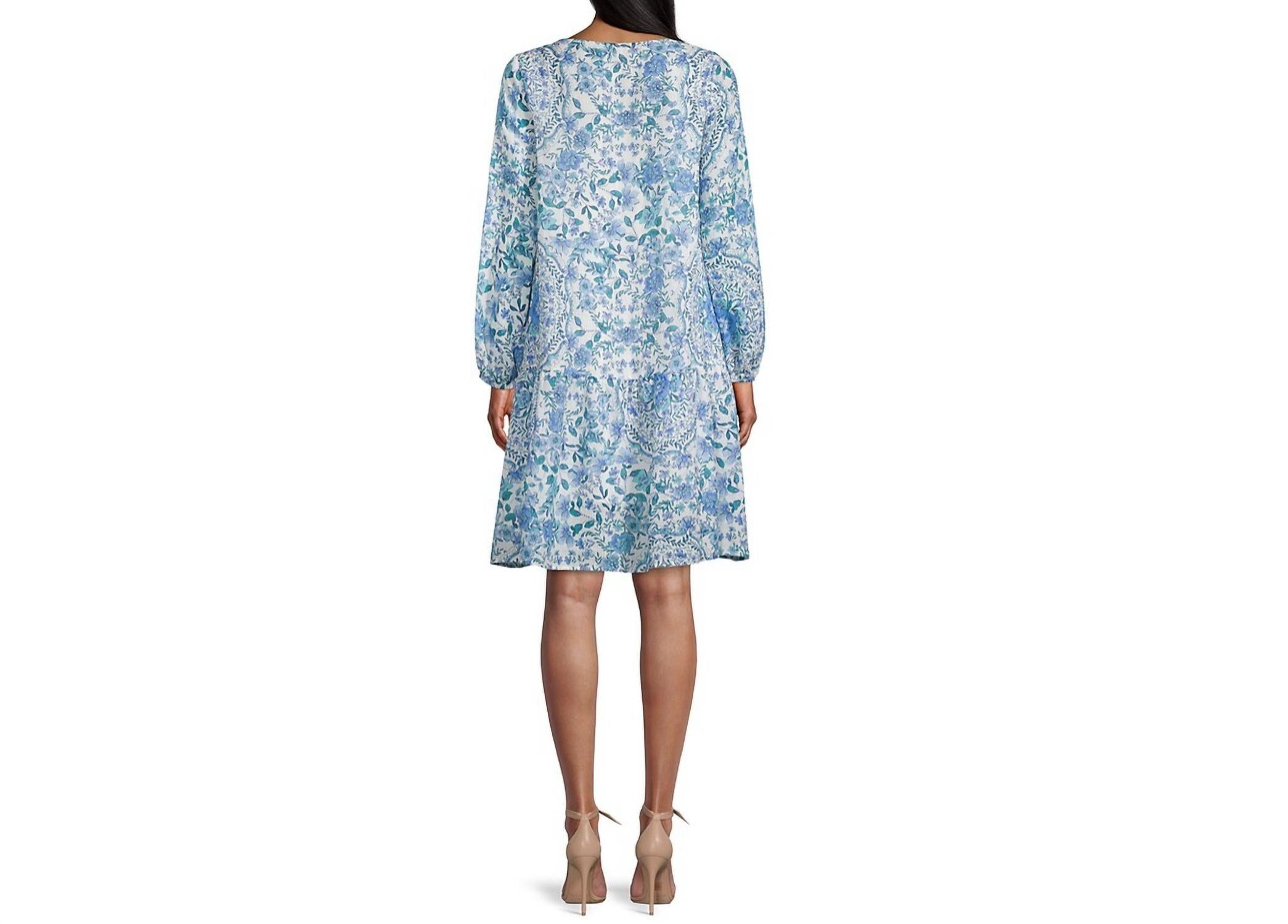 The perfect mini dress for those warmer months. 100% Linen. Pull On closure. Tent Style. Long sleeves with blouson cuff. Floral Design. Hand Wash Only. Imported