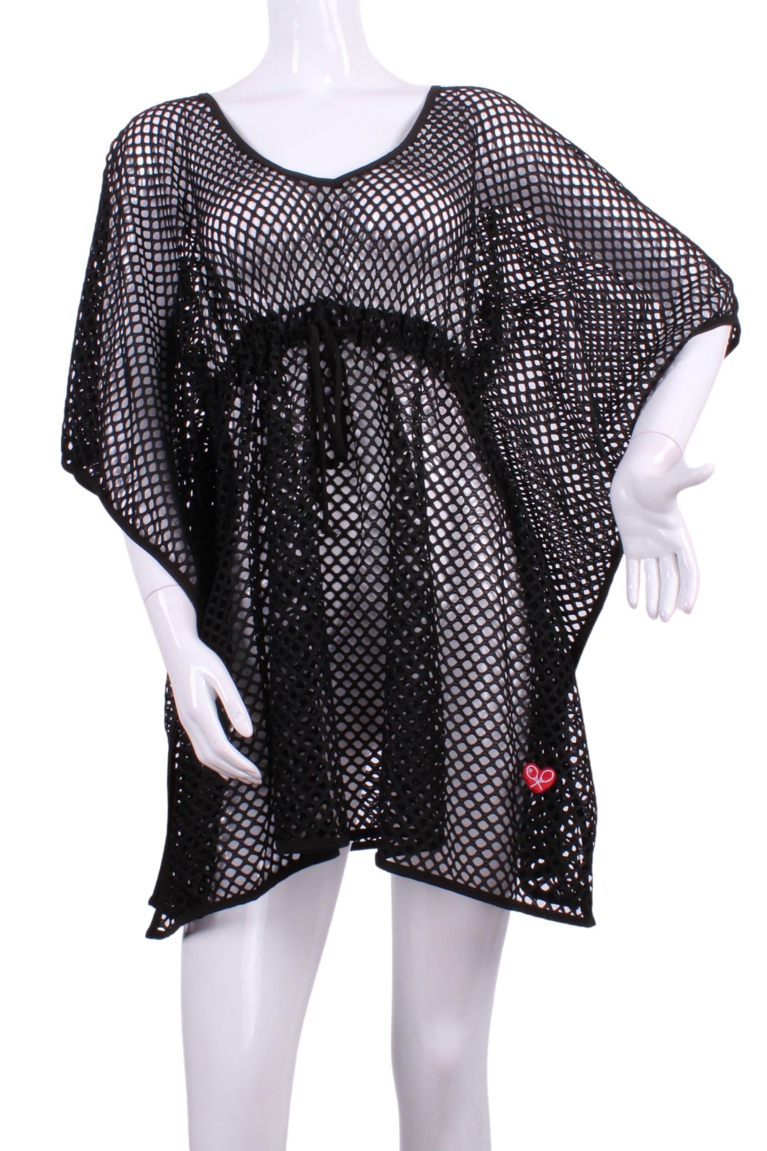 Introducing the Women's Cleo Sneakers To Flip Flops Tennis Dress by Love Love Tennis, a versatile athleisure piece perfect for game day or beach outings. This mini-length dress comes in stylish Black Fine Mesh and features short sleeves with a scoop neckline. Crafted from a textured fabric, it is designed with a signature "dry ball" net back pocket to hold two tennis balls, ensuring functionality on the court. Closure: Pull on. Care: Machine wash and line dry. Sizes range from XS (34"-36" bust) to M (38"-40" bust) and are made to order.
