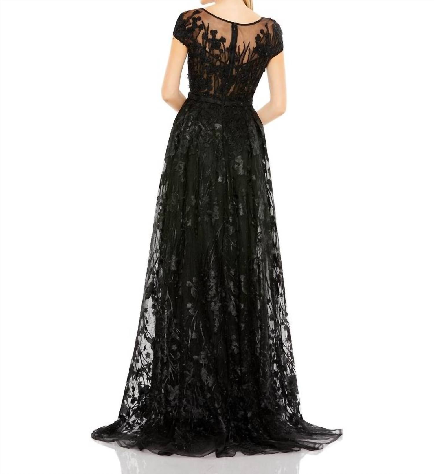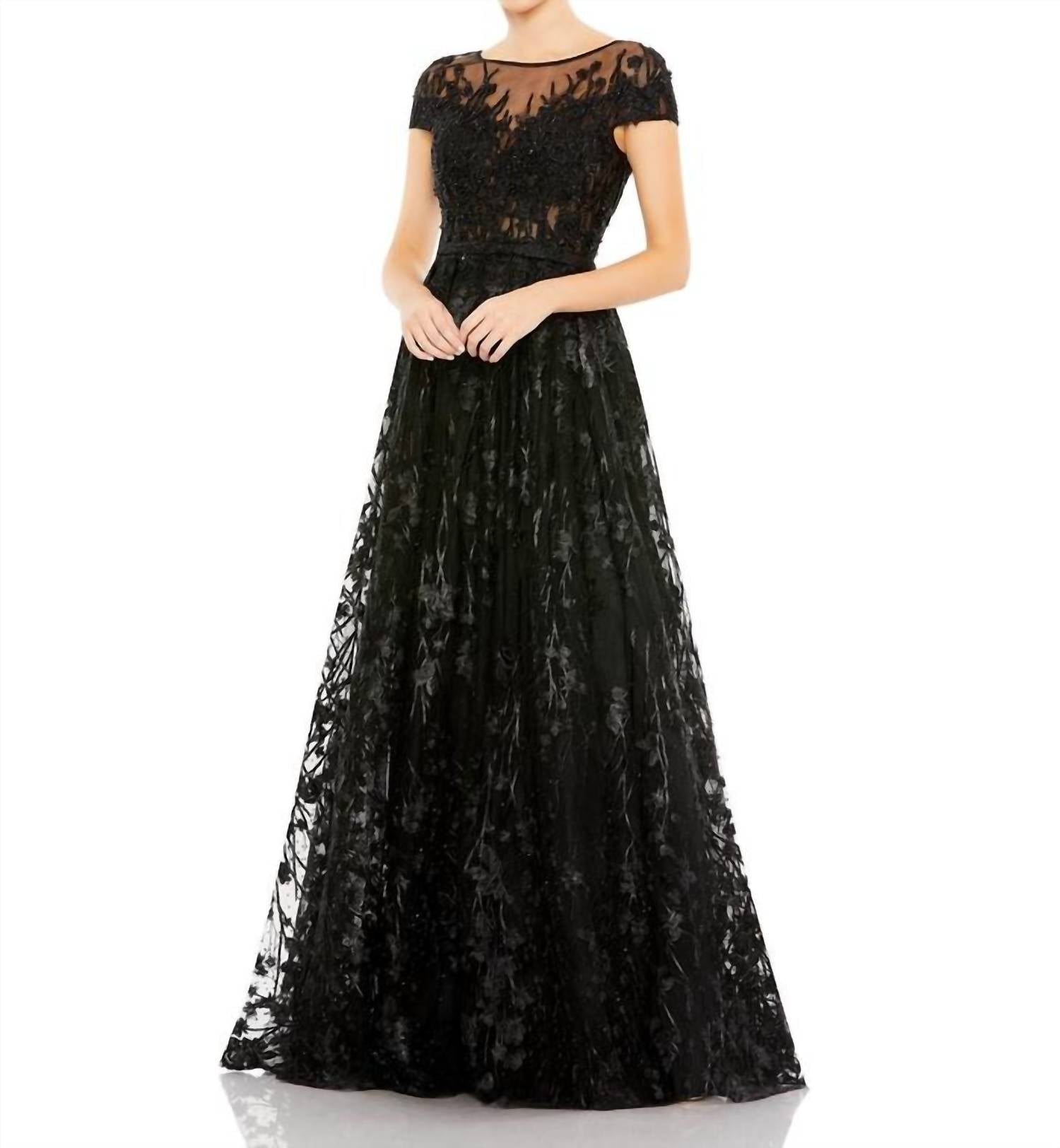 Mac Duggal - Embellished Floral Cap Sleeve Gown