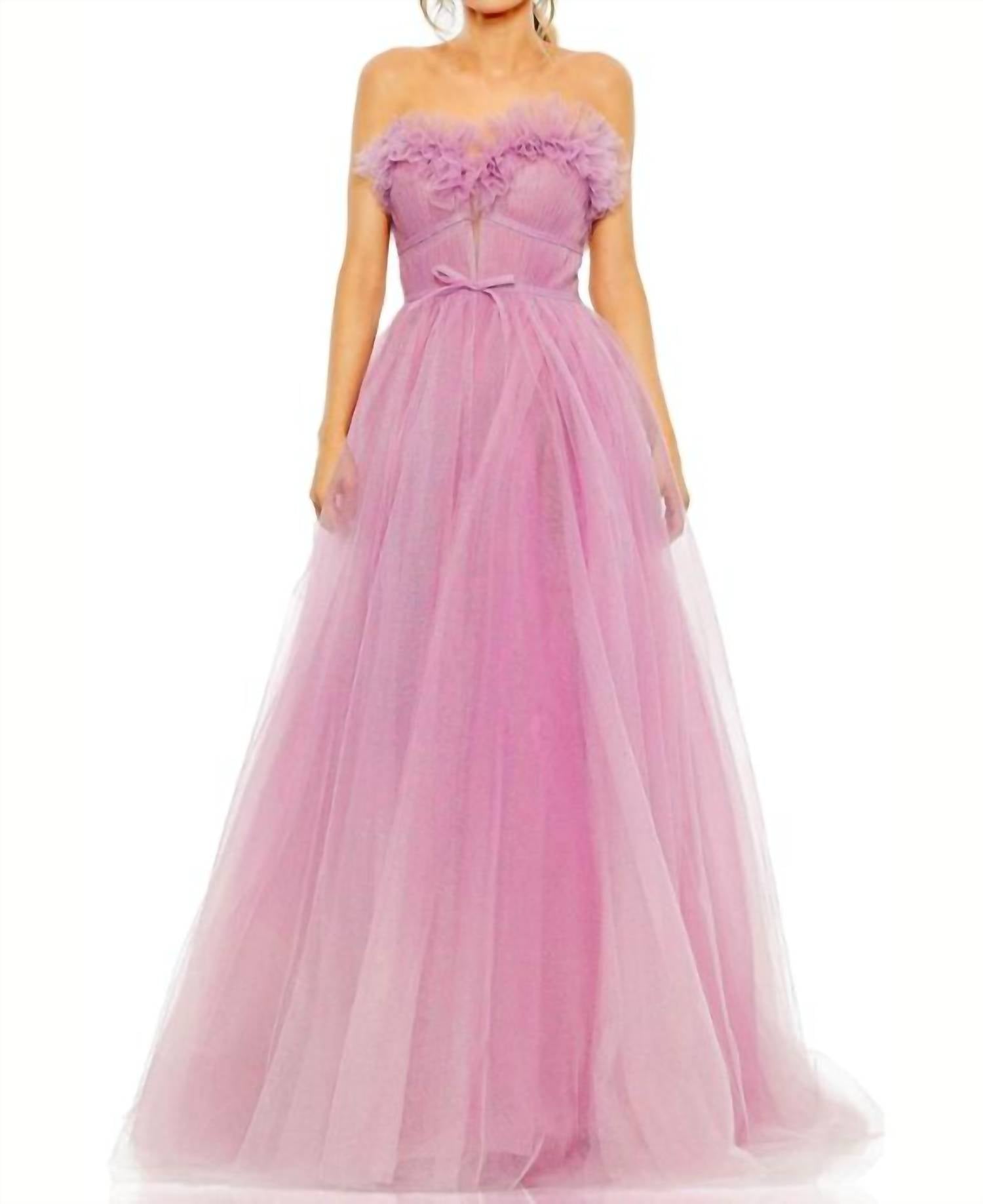 Mac Duggal - Strapless Glitter Tulle Ballgown
