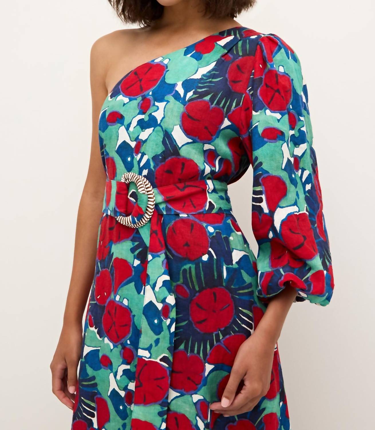 Style this maxi with your favorite statement necklace and sandals for the perfect look. Featuring a dramatic one-shoulder design with a full bagged sleeve, this maxi dress flaunts an A-line silhouette perfect for any special occasion. Its blend of 55% linen and 45% cotton is fully lined for comfort, while a side seam invisible zip closure ensures a sleek fit. Care instructions suggest a gentle machine wash with like colors and a line dry to keep its beauty intact.