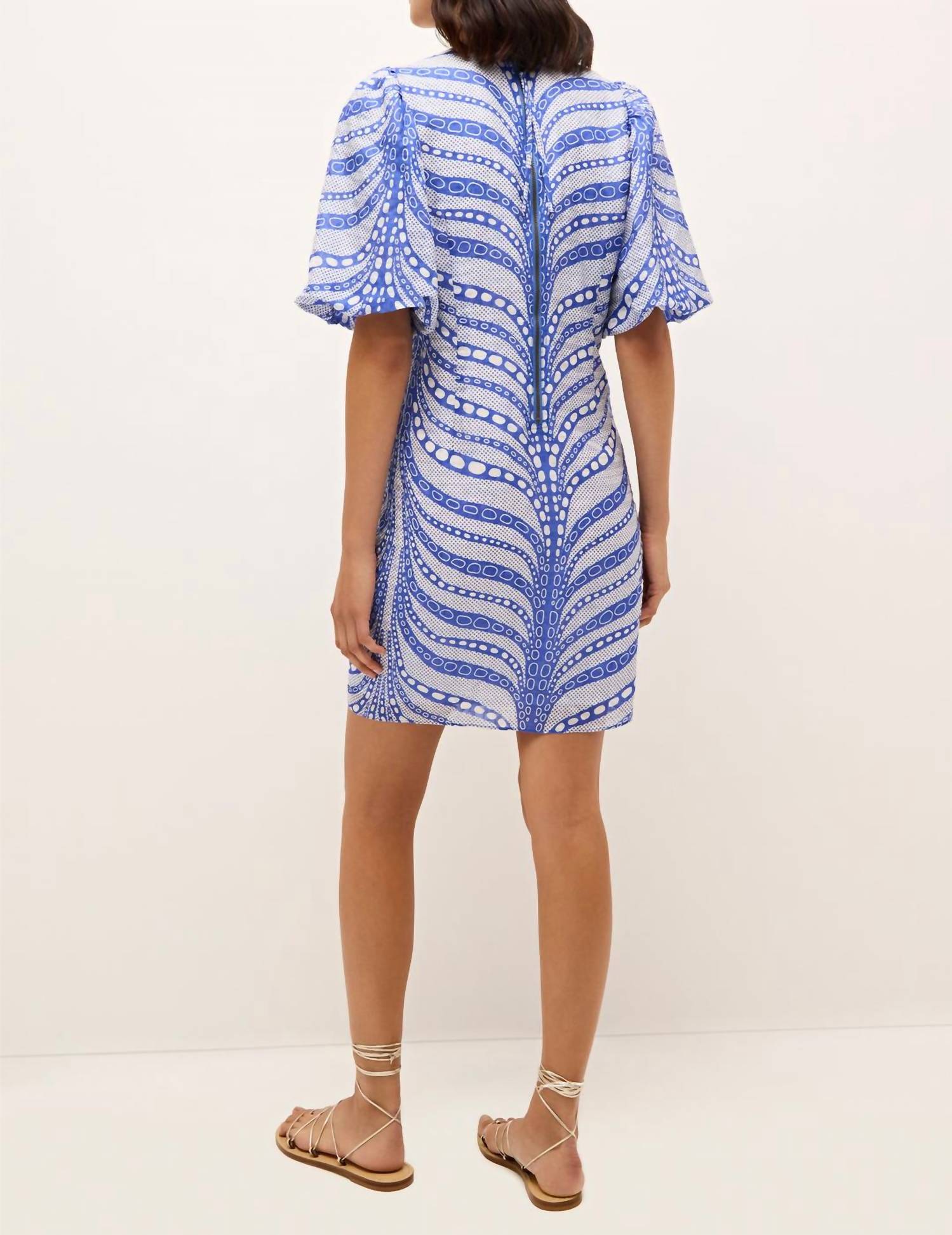 The kind of easy and flattering dress you'll be reaching for all season long. This mini dress in the vibrant Ripple colorway features short sleeves and a relaxed shift silhouette with gathered detailing at the neckline. Crafted from a 44% linen and 56% viscose blend, it is fully lined for added comfort. Closure: Exposed back zip closure. Dry clean only.