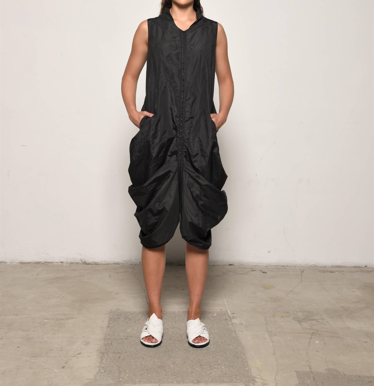 A midi dress so versatile, your options for wearing it are endless. Introducing the Athena Sleeveless Dress by Simply Mila, a standout piece in chic black designed for the modern woman. This midi-length dress is crafted from 100% textured fabric, featuring a scoopneck and dramatic ruching that flows into a voluminous bubble hem, creating a sculptural silhouette. It's made in the USA and accented with a mandarin-style collar and discreet hook and eye closure. It includes practical hidden side pockets, perfect for your essentials. Care is simple with machine wash cold on a delicate cycle inside out, and air dry.