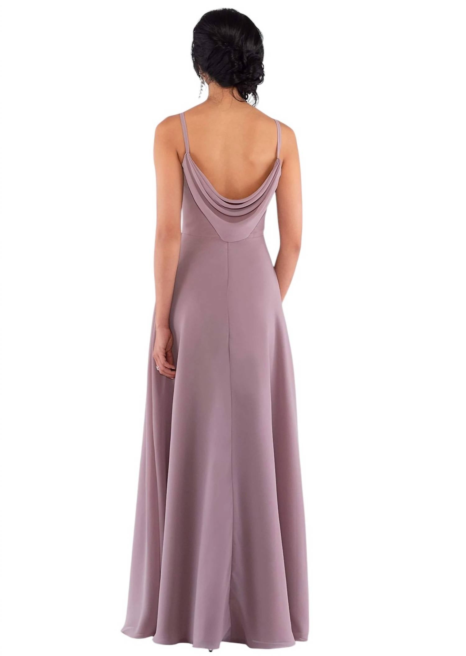 Introducing the Classic Bridesmaid Dress with Cowl Back by Sorella Vita, a captivating choice for any wedding backdrop. Crafted with luxurious chiffon, this sheath silhouette with a column skirt delivers a flattering fit. Featuring a plunging V-neckline and an elegant cowl back, it effortlessly combines sexiness with modern style. Closure: Zip. Sleeve Length: Spaghetti Straps. Color: Dusty Lavender.
