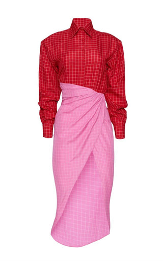 Brandon Maxwell - Colorblock Windowpane Cotton Shirt Dress