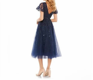 Mac Duggal - Embellished Fluttersleeve Tea Length Dress