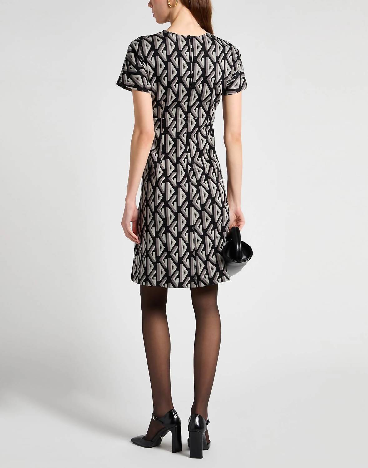 The kind of easy and flattering dress you'll be reaching for all season long. Step into the spotlight with the Dolce & Gabbana A-line Mini Dress, a vibrant geometric masterpiece perfect for any evening event. This Italian-crafted dress features short sleeves and a classic crewneck for a touch of timeless elegance, complemented by a flared silhouette and jersey material. Its 100% cotton composition ensures comfort, while a length of 37.05 inches from the shoulders adds a flattering look. With a convenient zip closure, this dress is easy to wear and maintain with machine washing or dry cleaning; just be sure not to bleach or tumble dry.